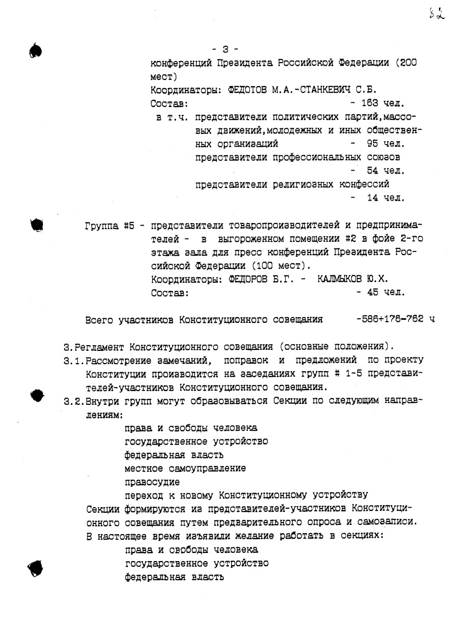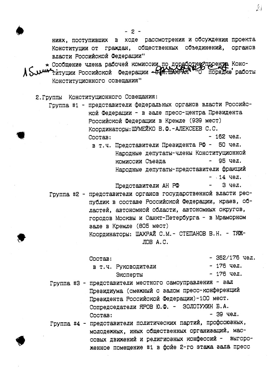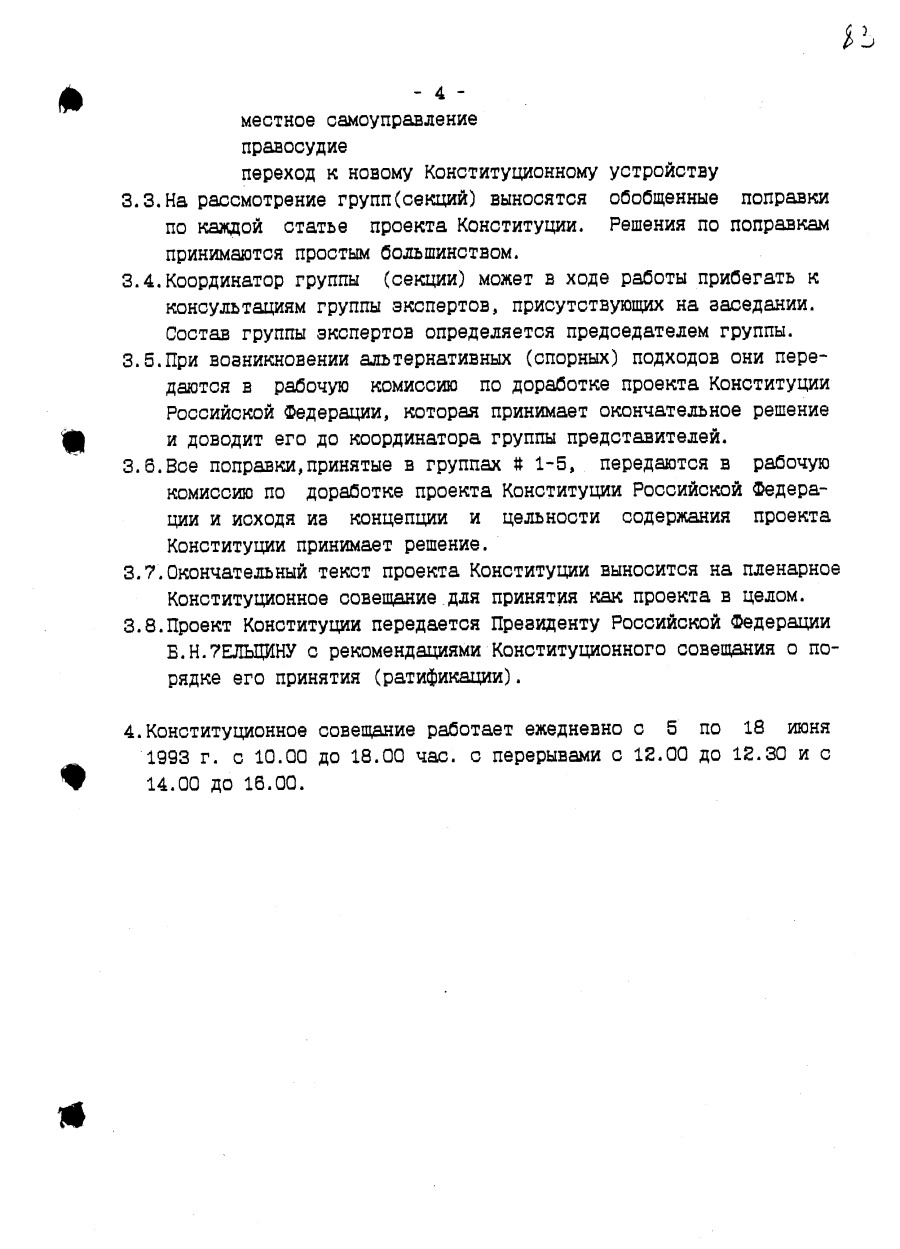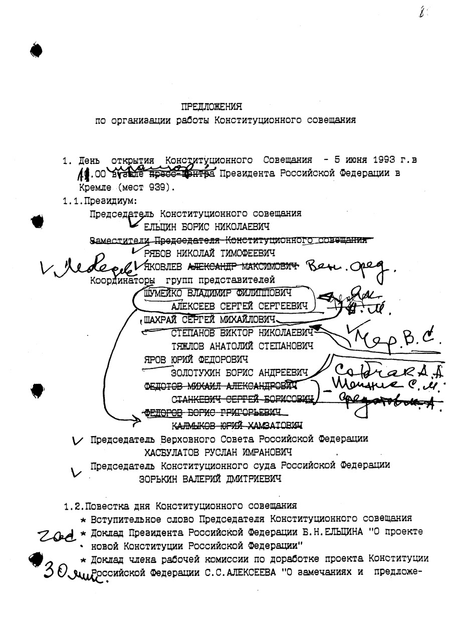 Проект предложений по организации работы Конституционного совещания с правкой Президента Российской Федерации Б.Н. Ельцина Июнь 1993 г.