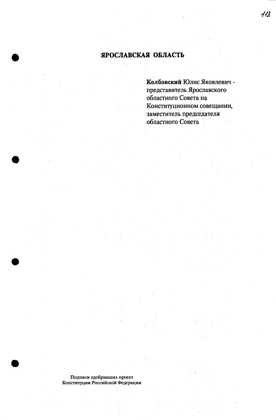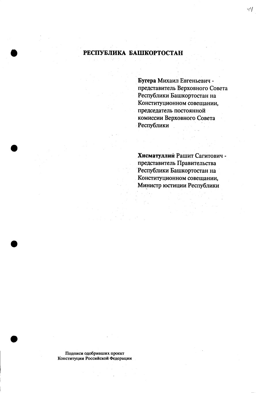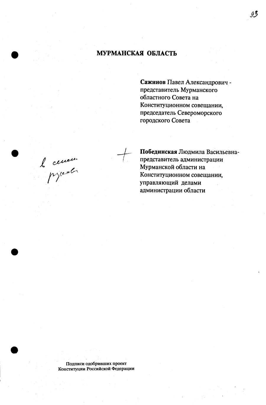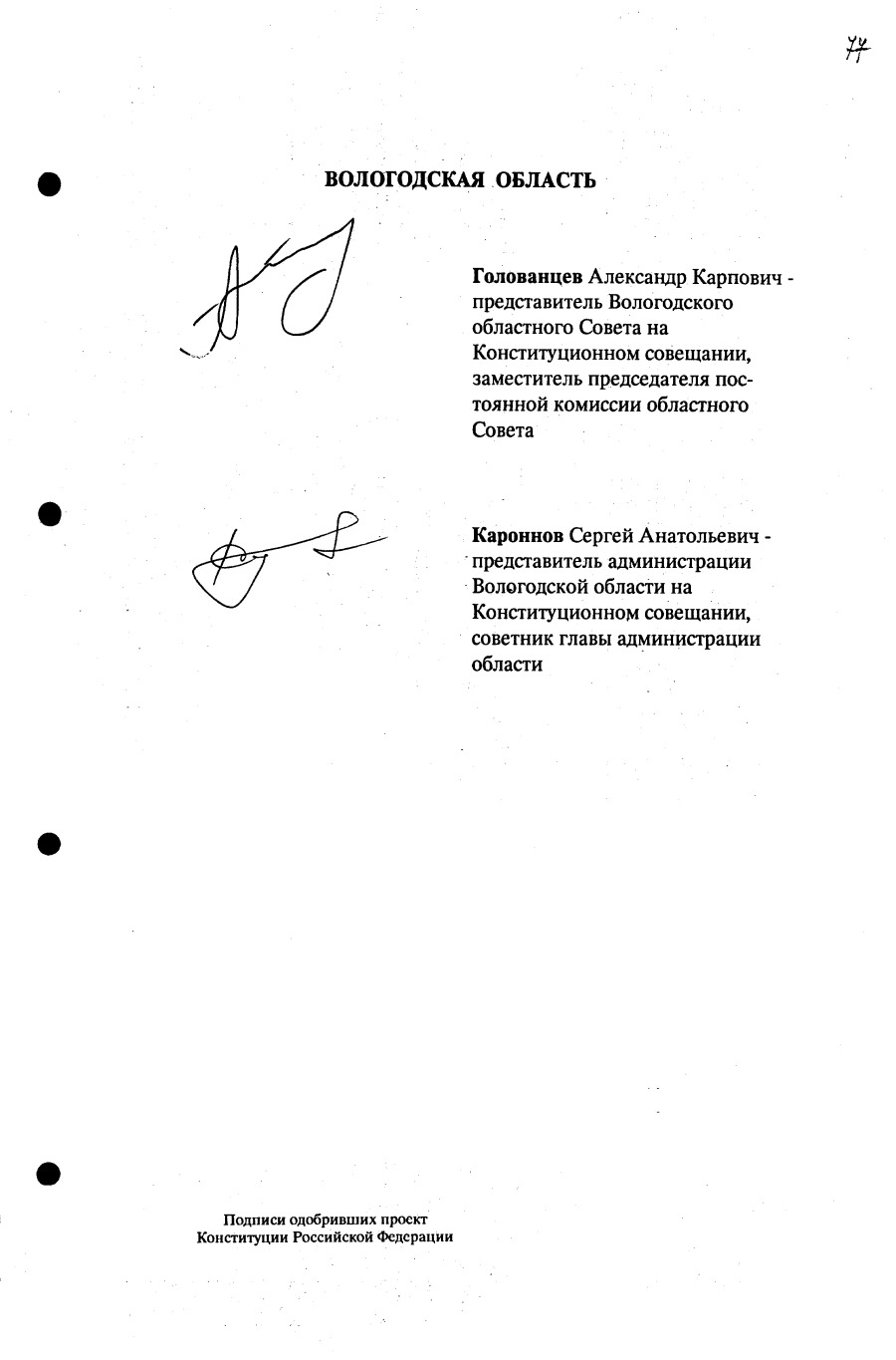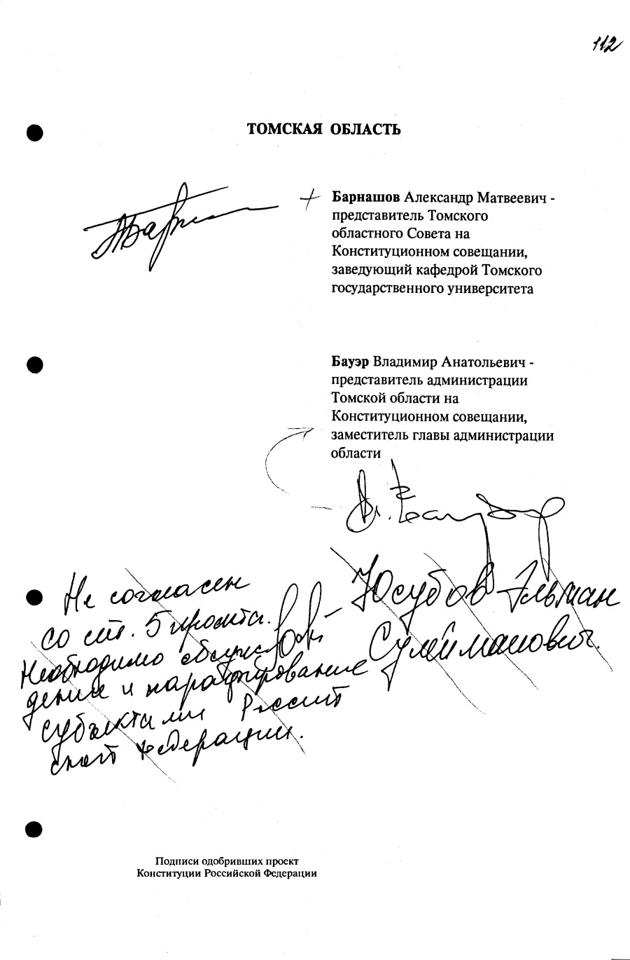 Проект Конституции РФ и подписи участников Конституционного совещания, одобривших этот проект 12 июля 1993 года (Представители органов государстваенной власти республик в составе РФ, краев, областей, автономной области, автономных округов, городов Московской области)