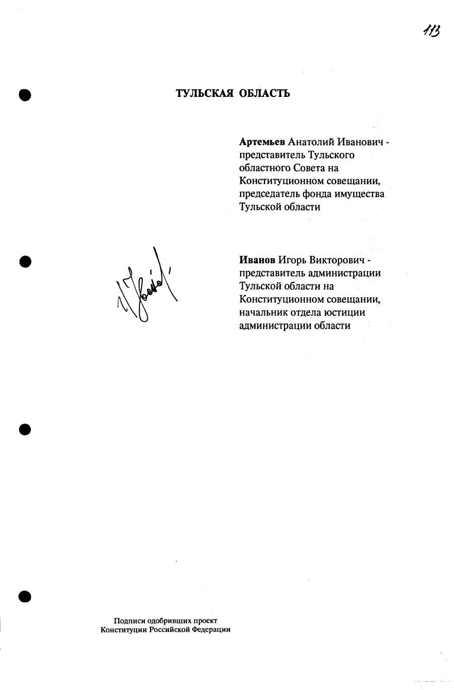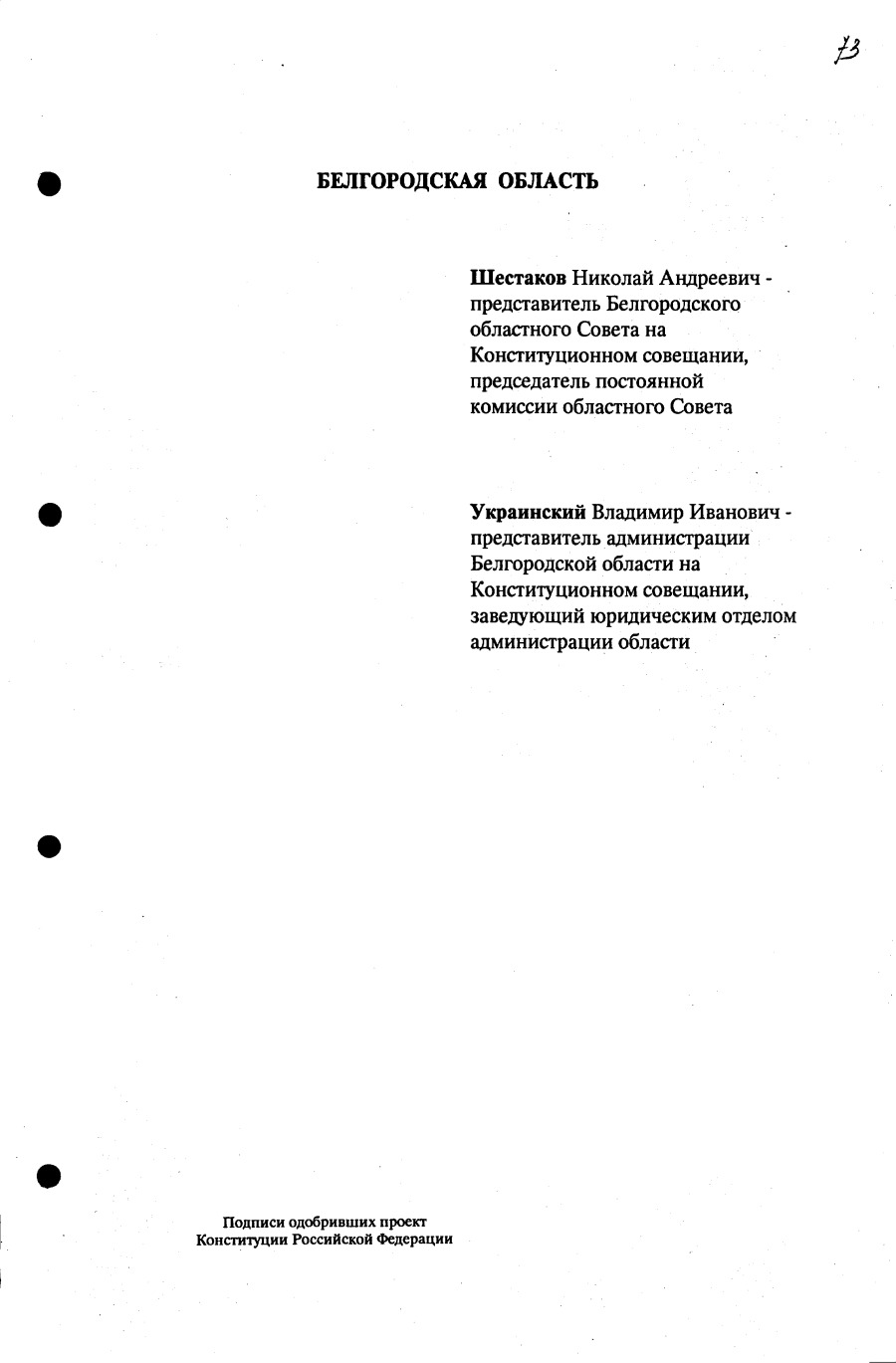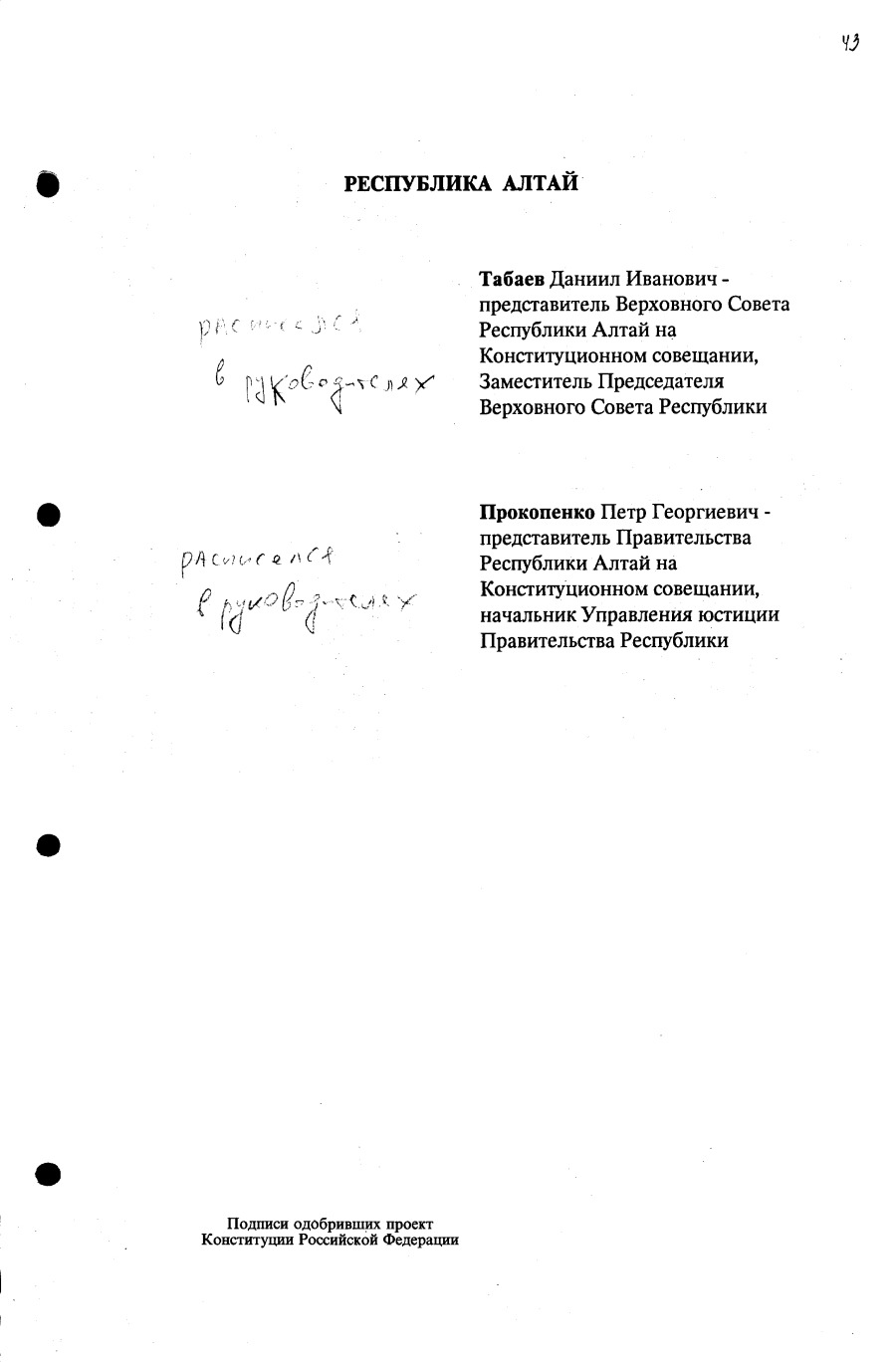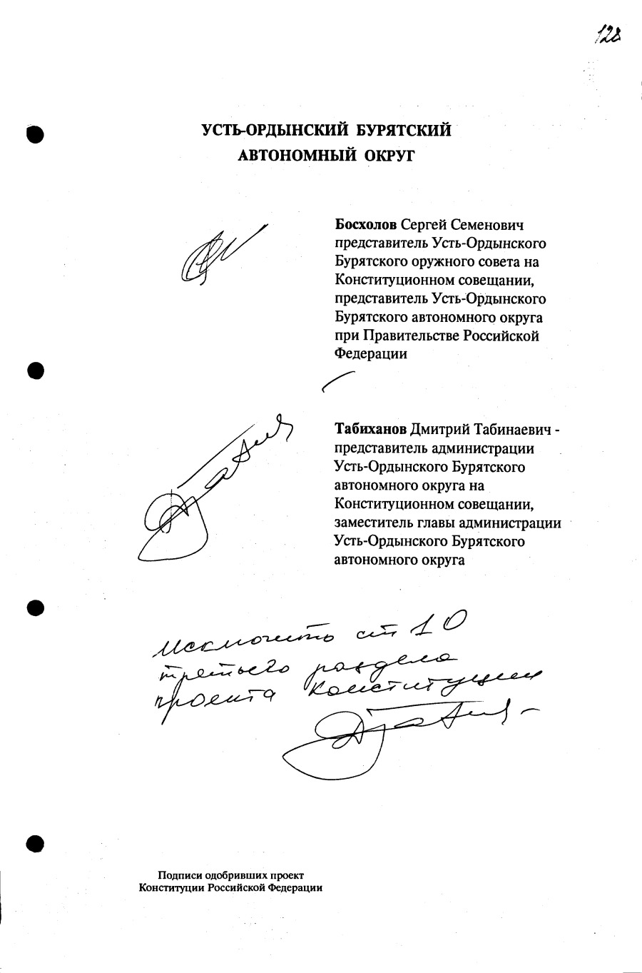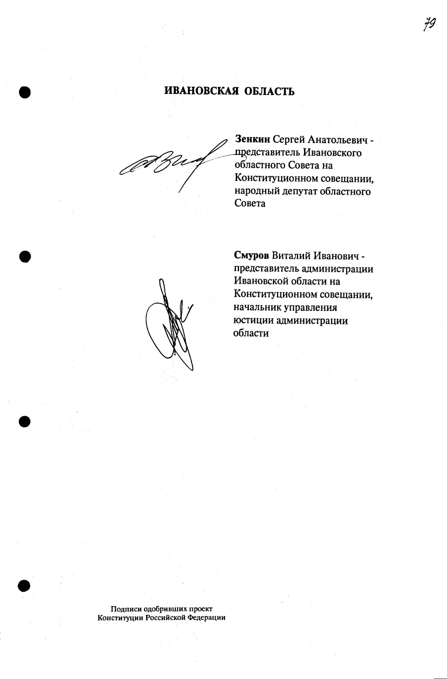Проект Конституции РФ и подписи участников Конституционного совещания, одобривших этот проект 12 июля 1993 года (Представители органов государстваенной власти республик в составе РФ, краев, областей, автономной области, автономных округов, городов Московской области)