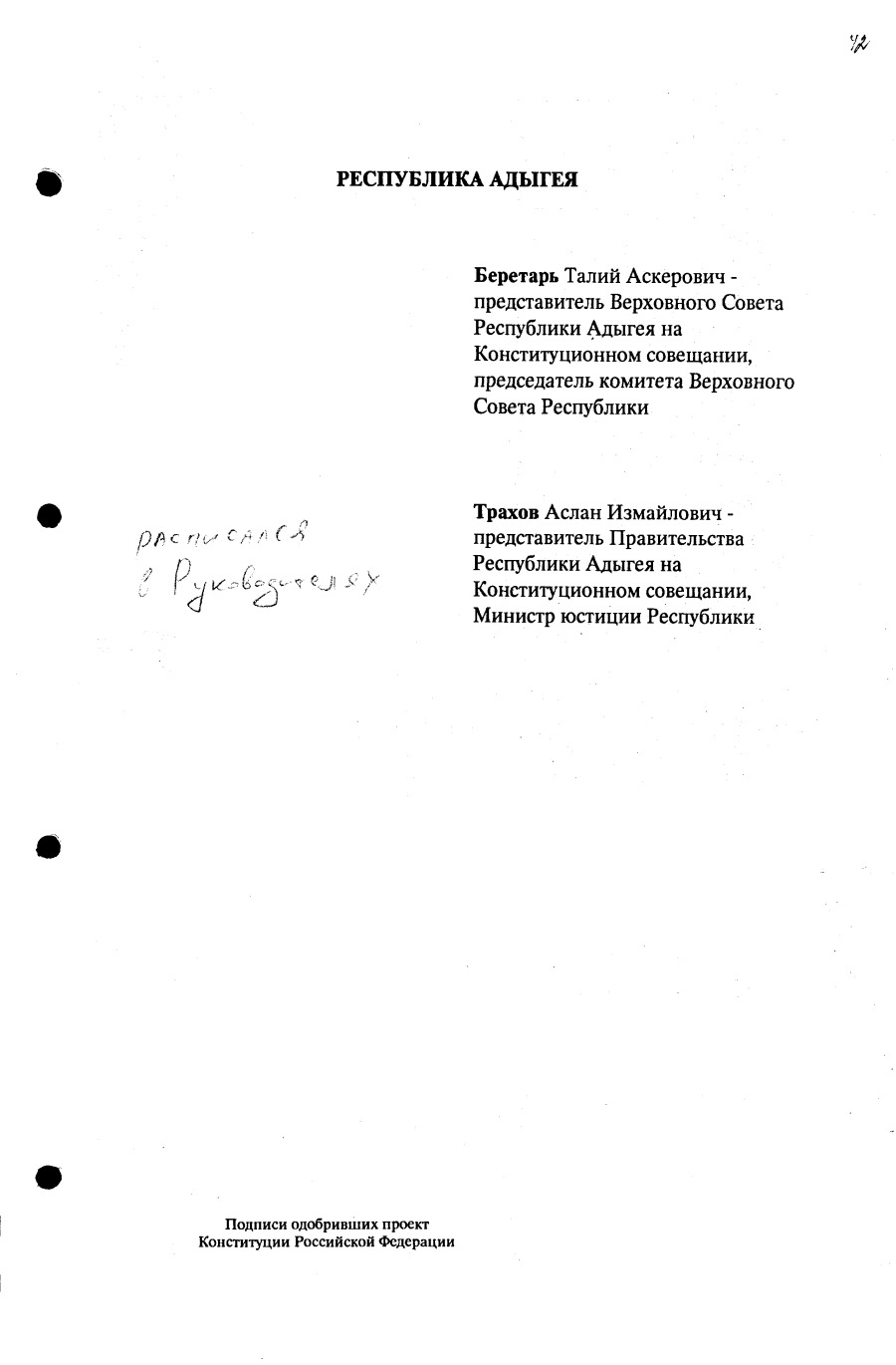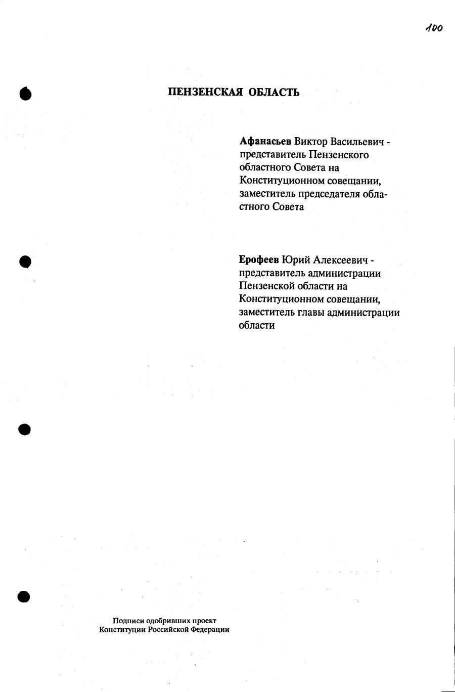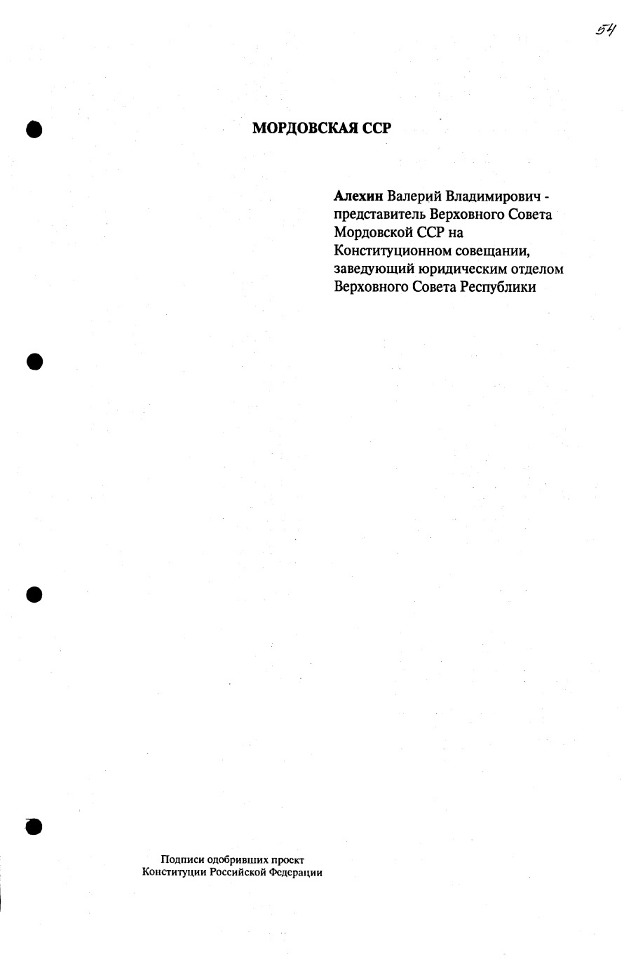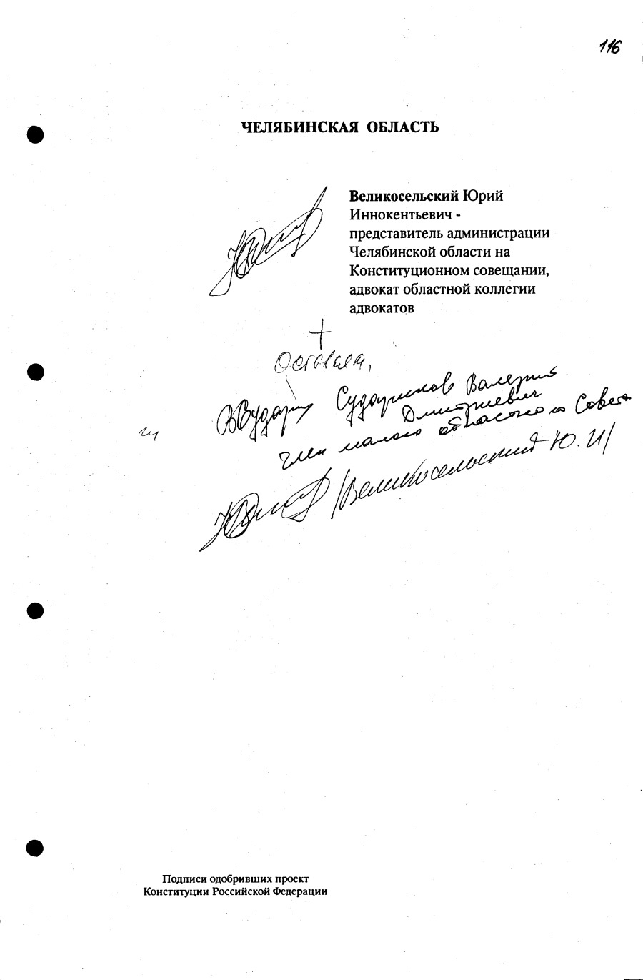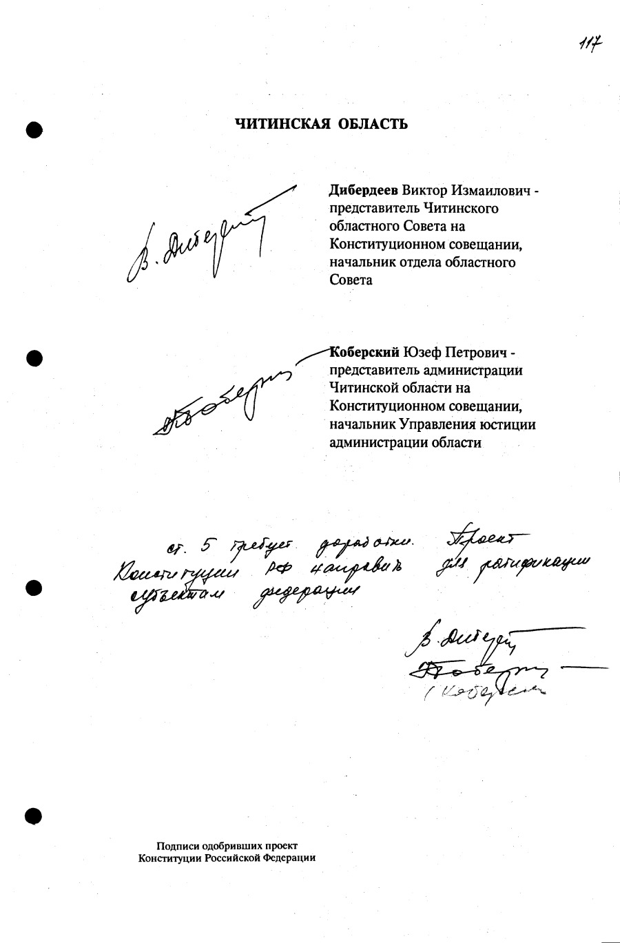 Проект Конституции РФ и подписи участников Конституционного совещания, одобривших этот проект 12 июля 1993 года (Представители органов государстваенной власти республик в составе РФ, краев, областей, автономной области, автономных округов, городов Московской области)