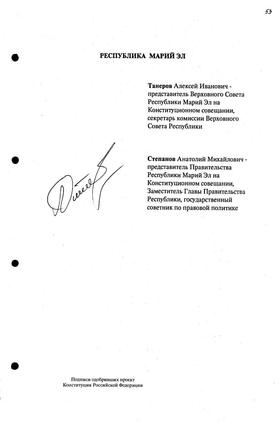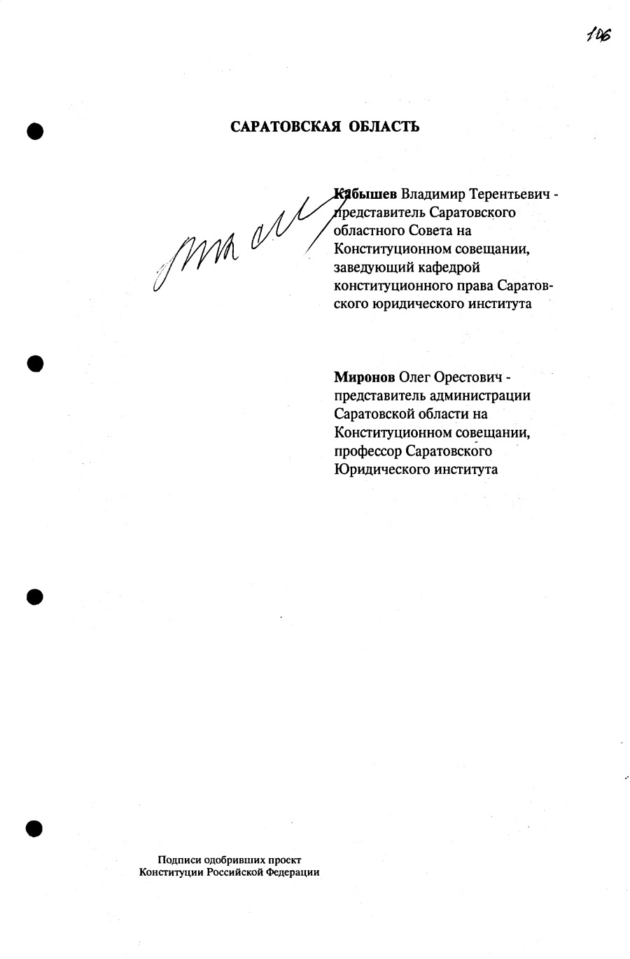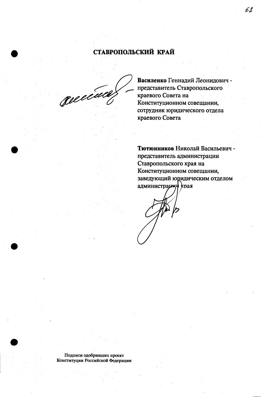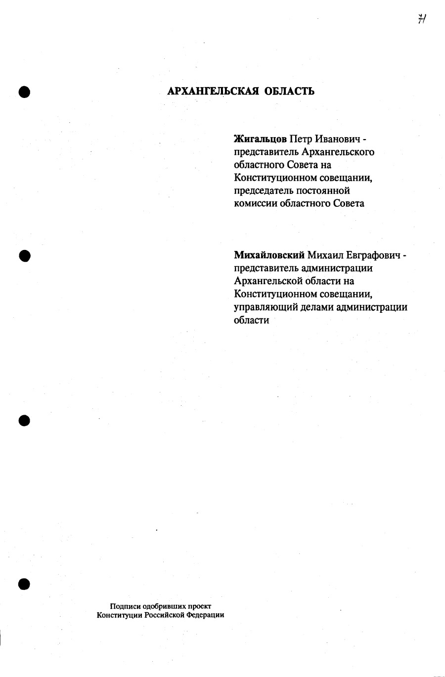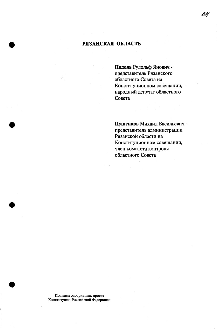 Проект Конституции РФ и подписи участников Конституционного совещания, одобривших этот проект 12 июля 1993 года (Представители органов государстваенной власти республик в составе РФ, краев, областей, автономной области, автономных округов, городов Московской области)