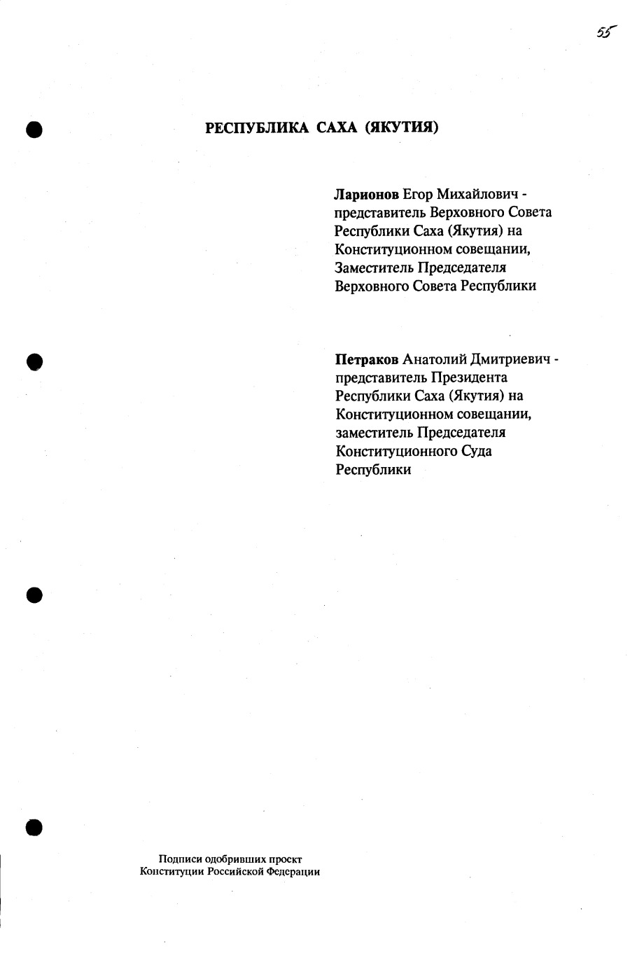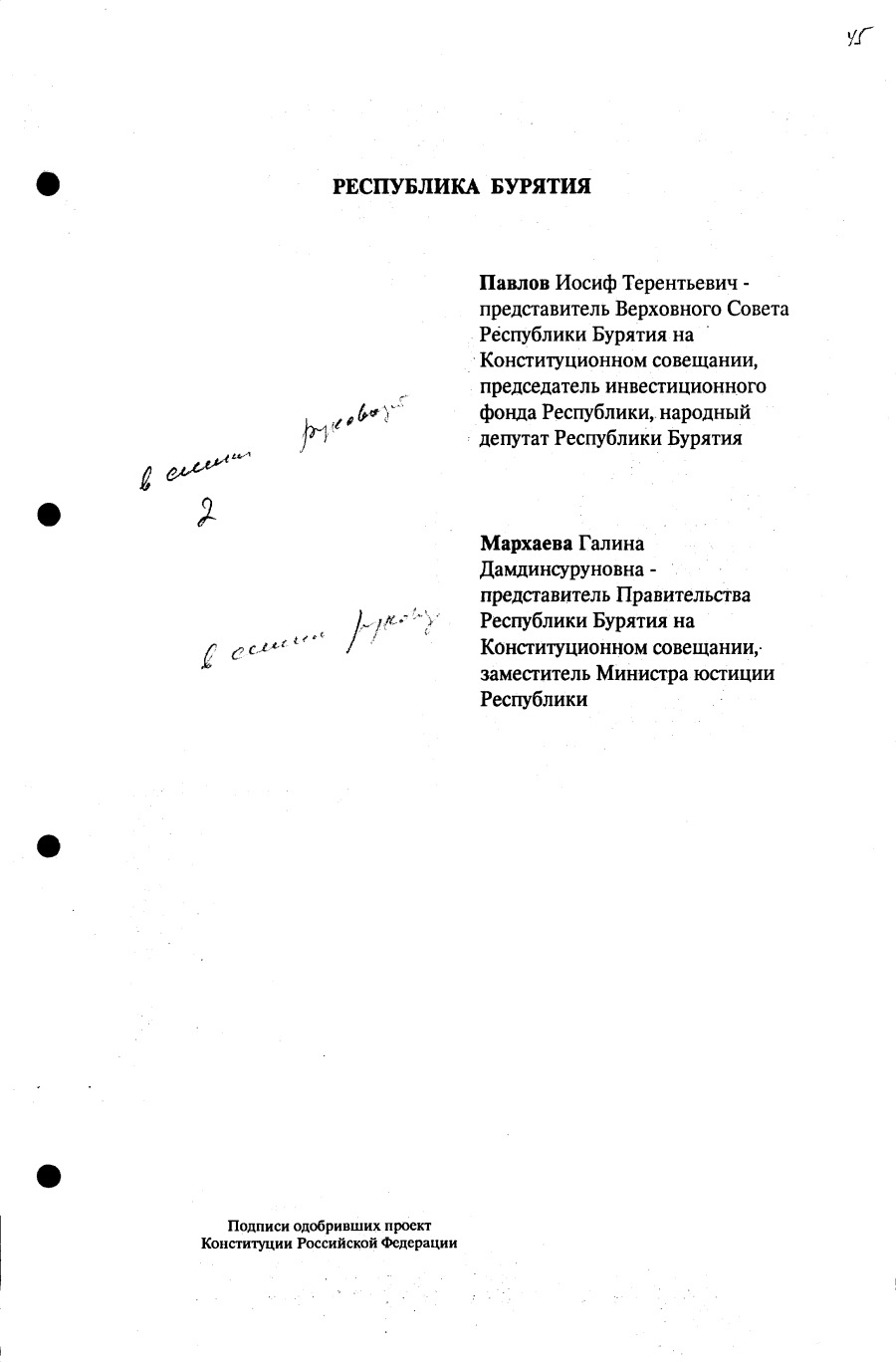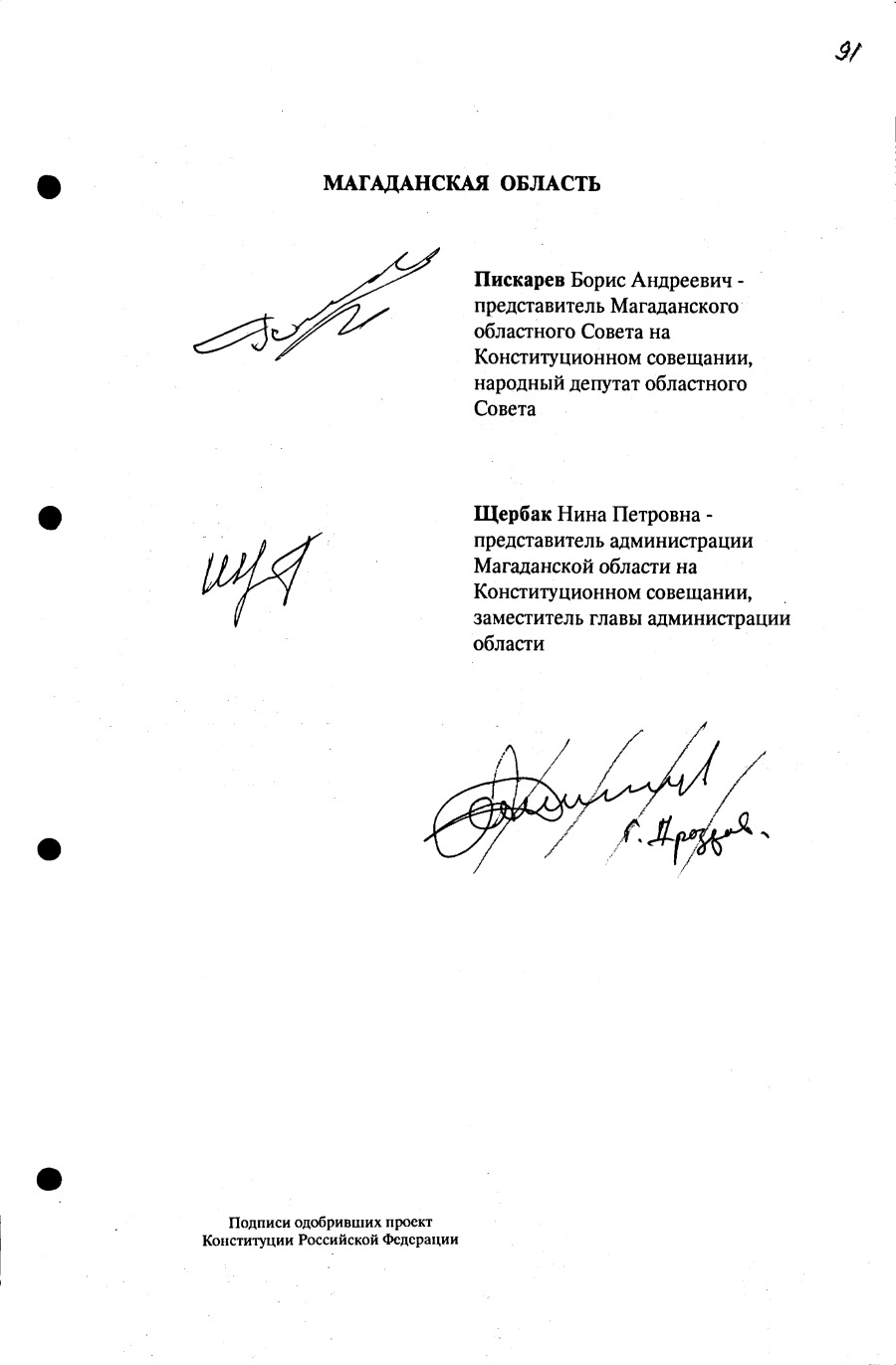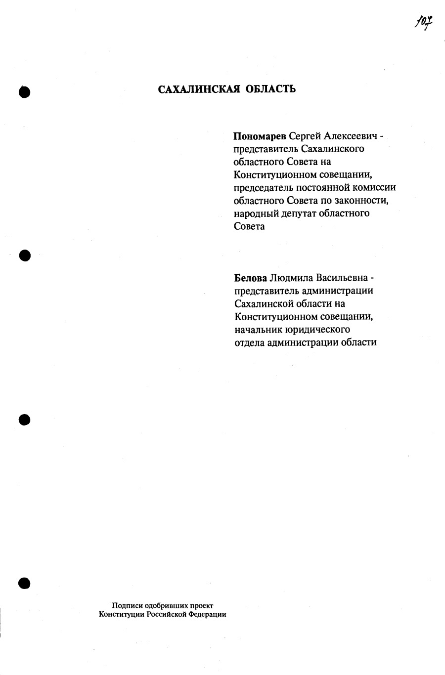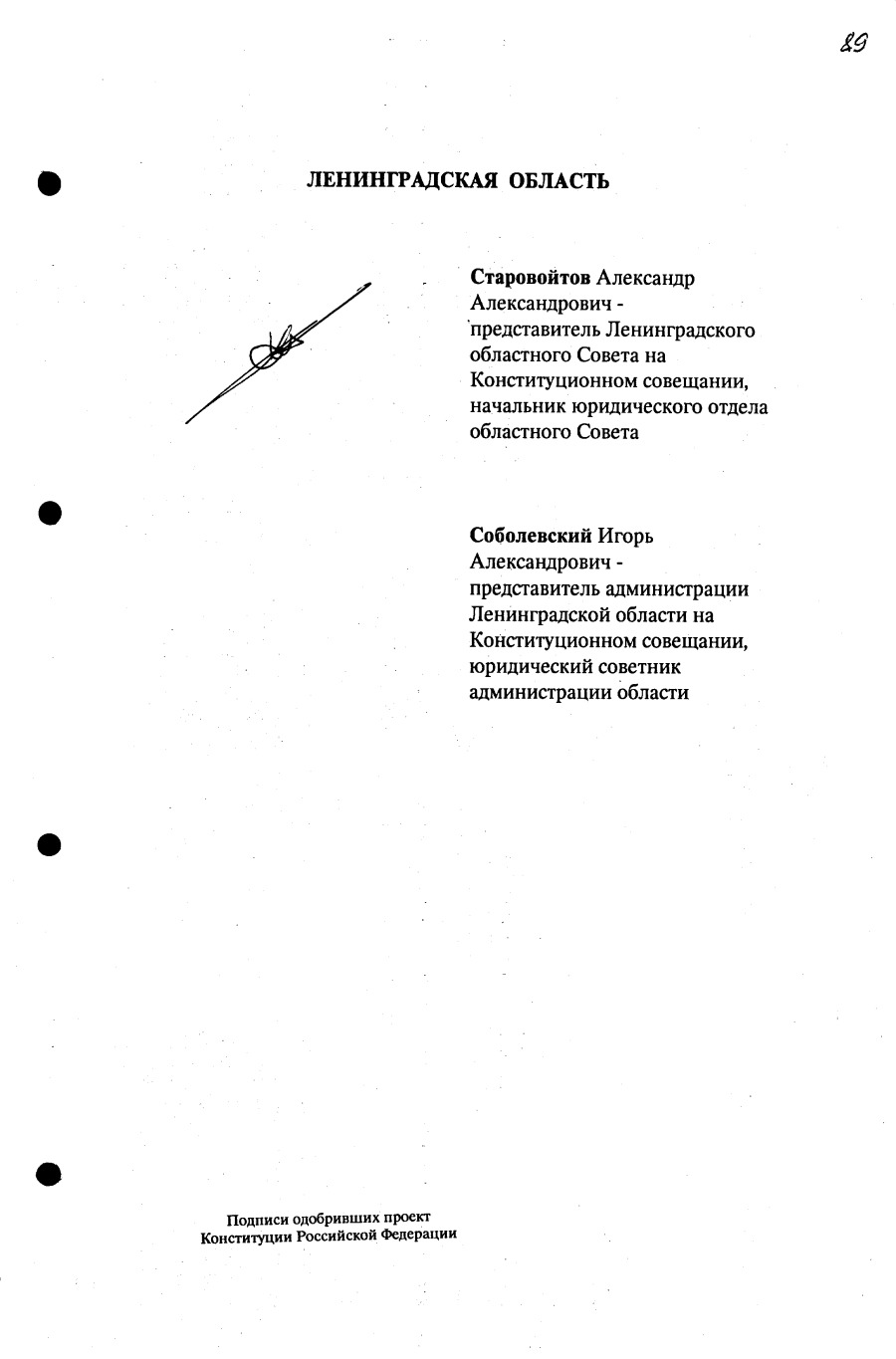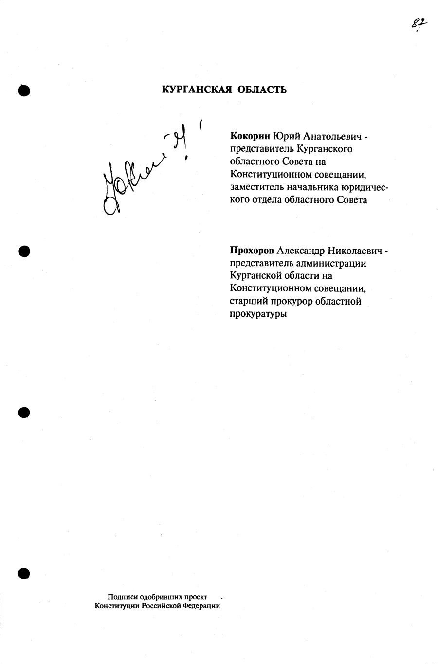 Проект Конституции РФ и подписи участников Конституционного совещания, одобривших этот проект 12 июля 1993 года (Представители органов государстваенной власти республик в составе РФ, краев, областей, автономной области, автономных округов, городов Московской области)