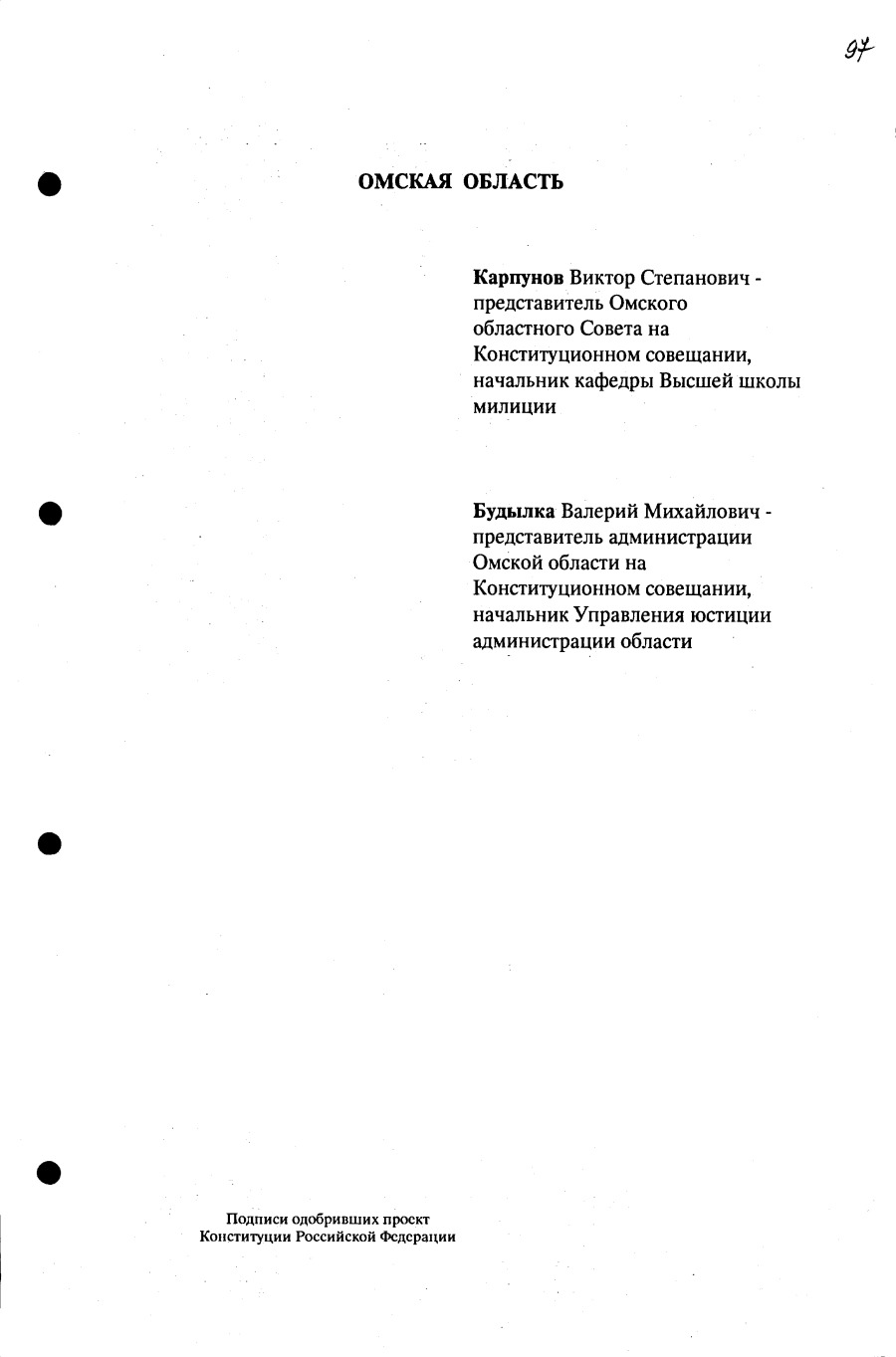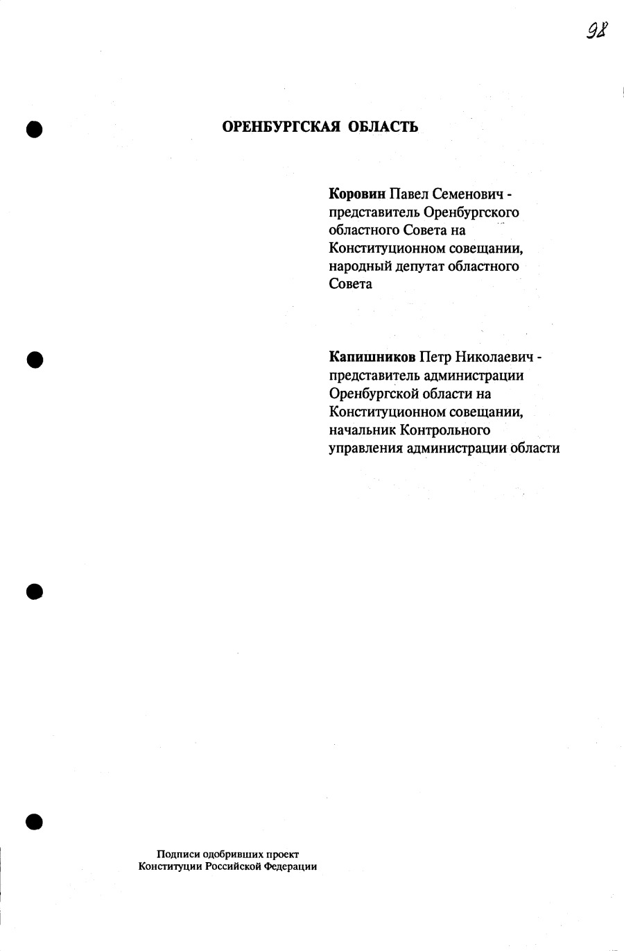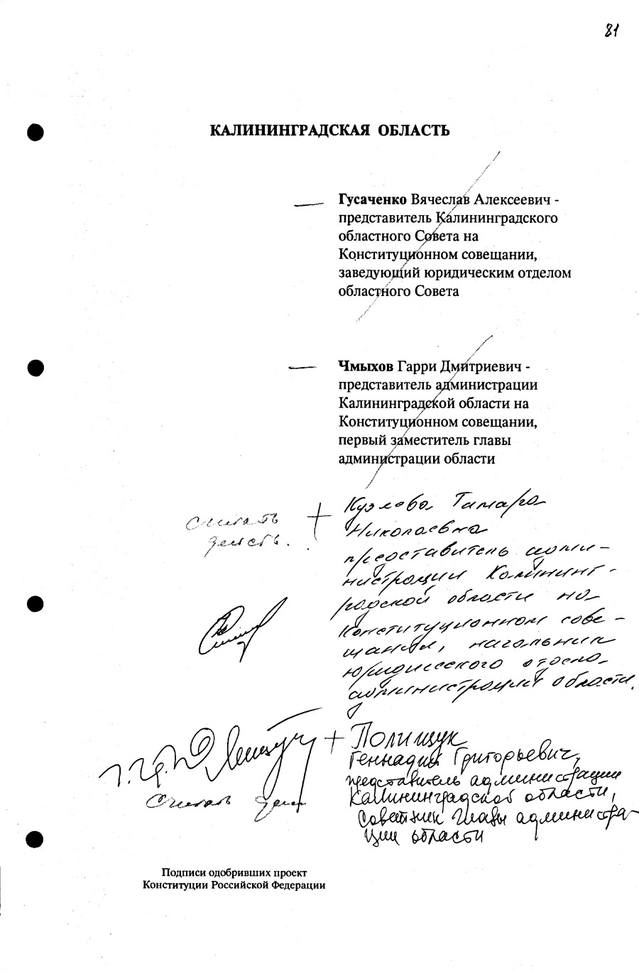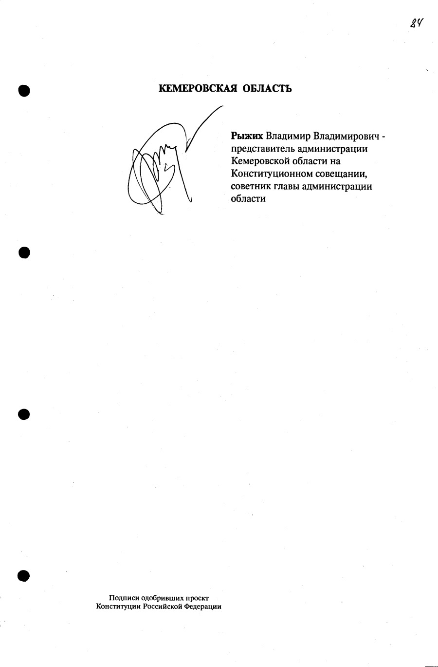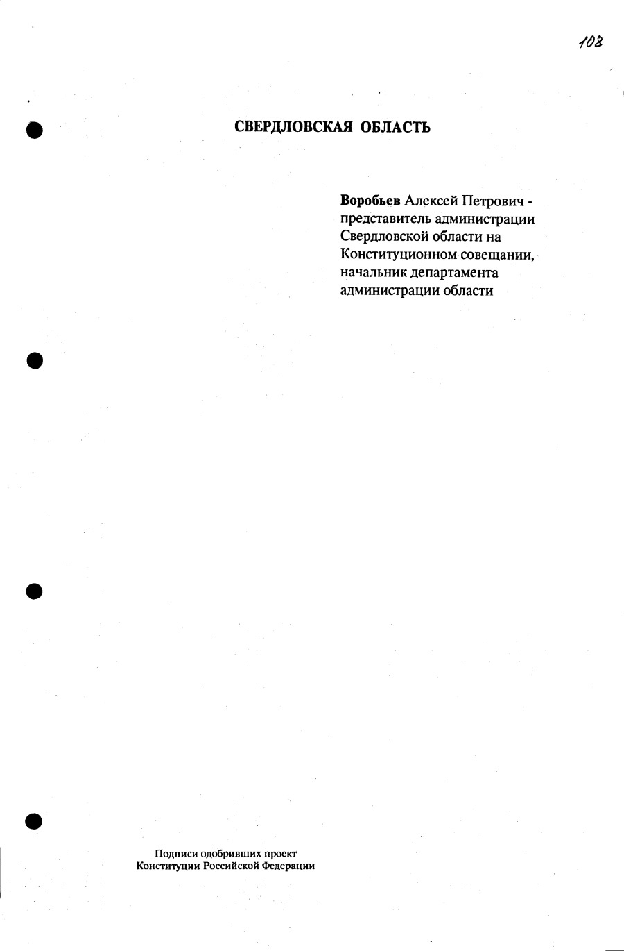 Проект Конституции РФ и подписи участников Конституционного совещания, одобривших этот проект 12 июля 1993 года (Представители органов государстваенной власти республик в составе РФ, краев, областей, автономной области, автономных округов, городов Московской области)