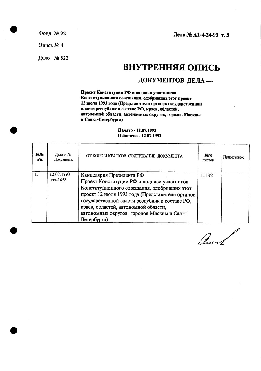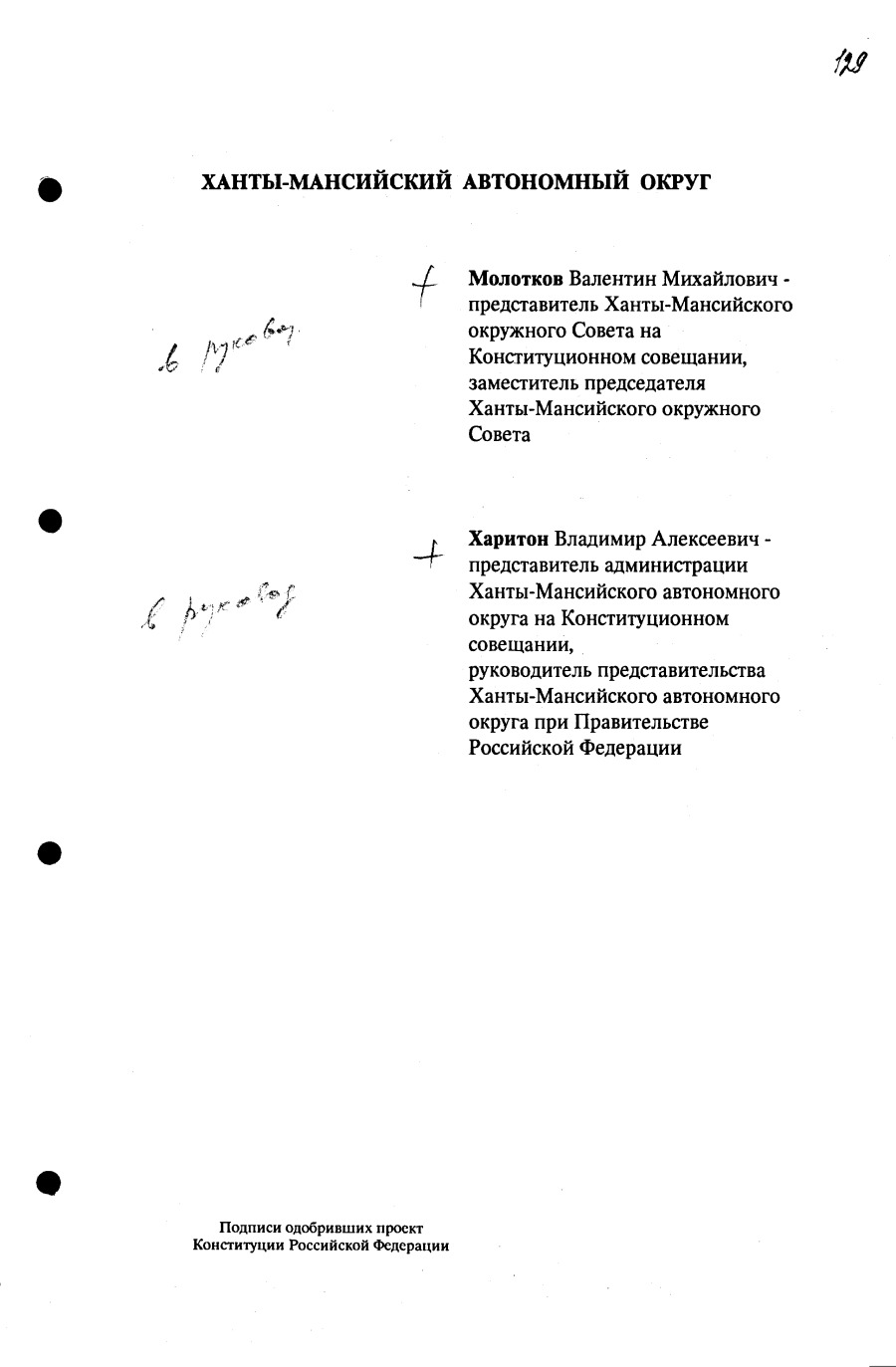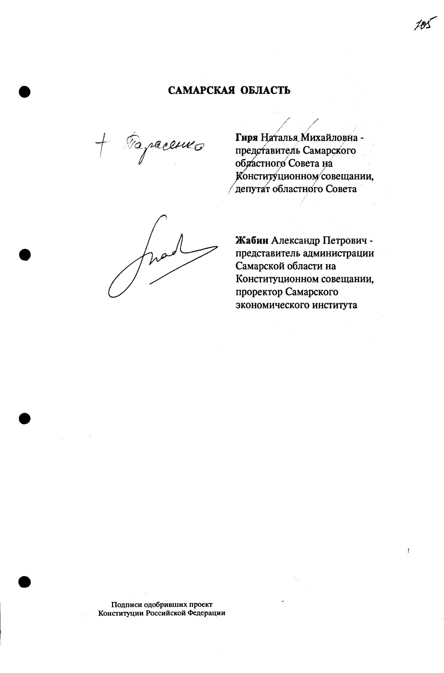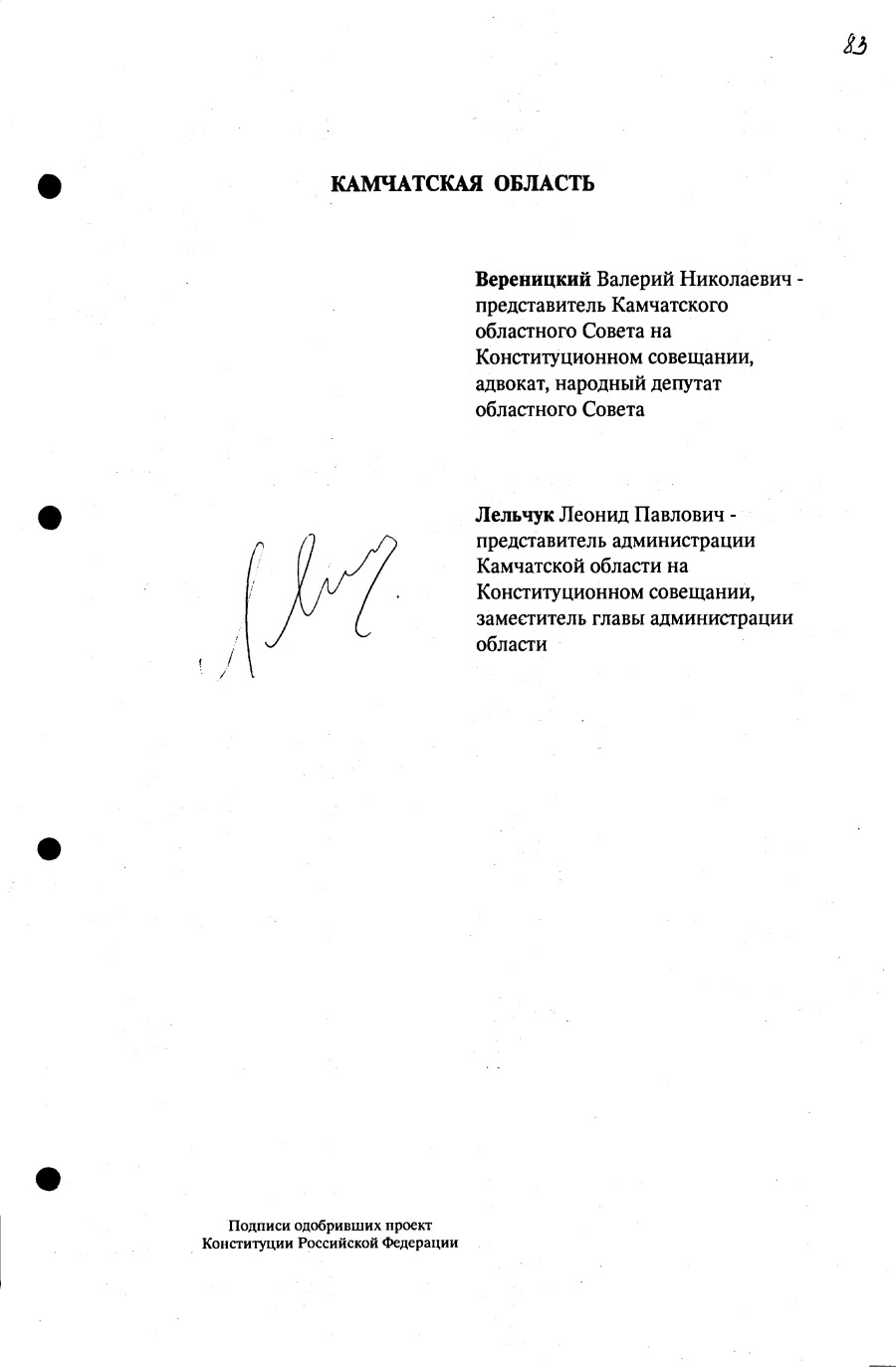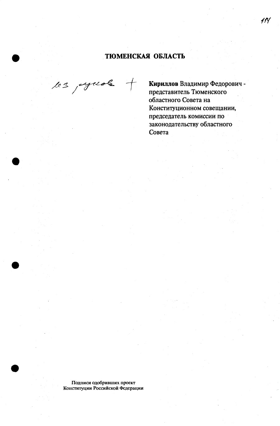Проект Конституции РФ и подписи участников Конституционного совещания, одобривших этот проект 12 июля 1993 года (Представители органов государстваенной власти республик в составе РФ, краев, областей, автономной области, автономных округов, городов Московской области)