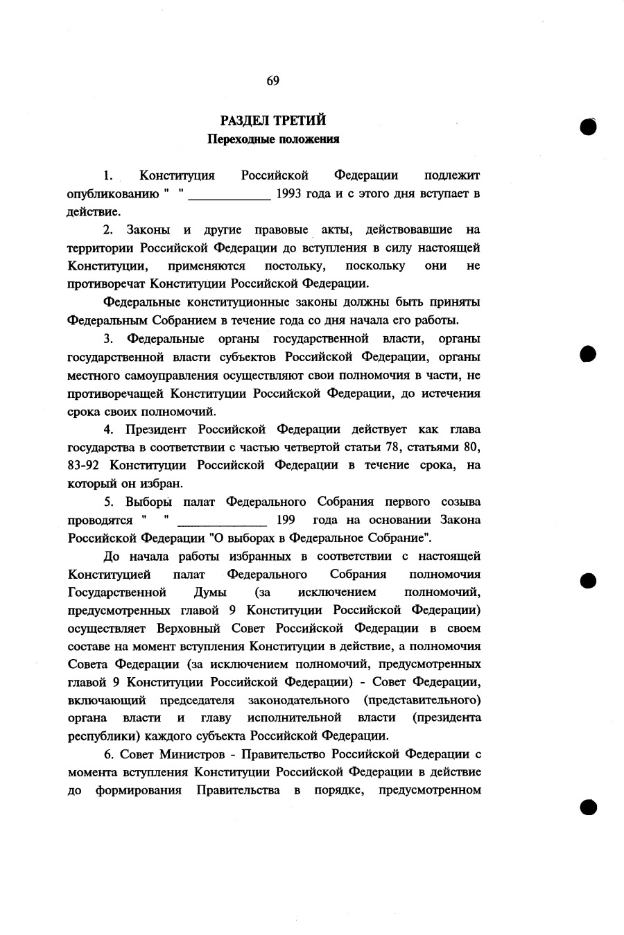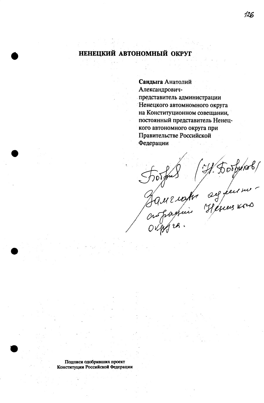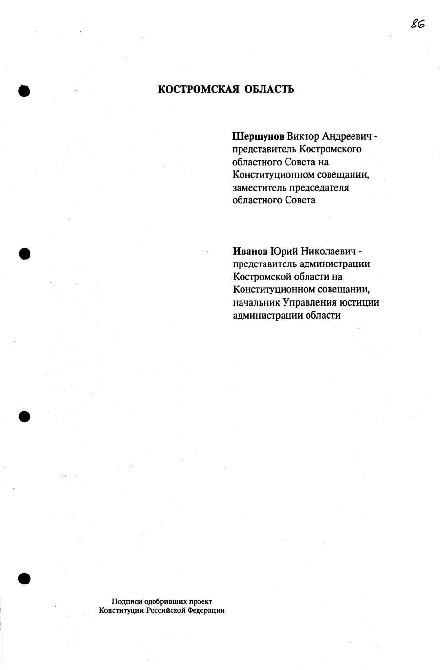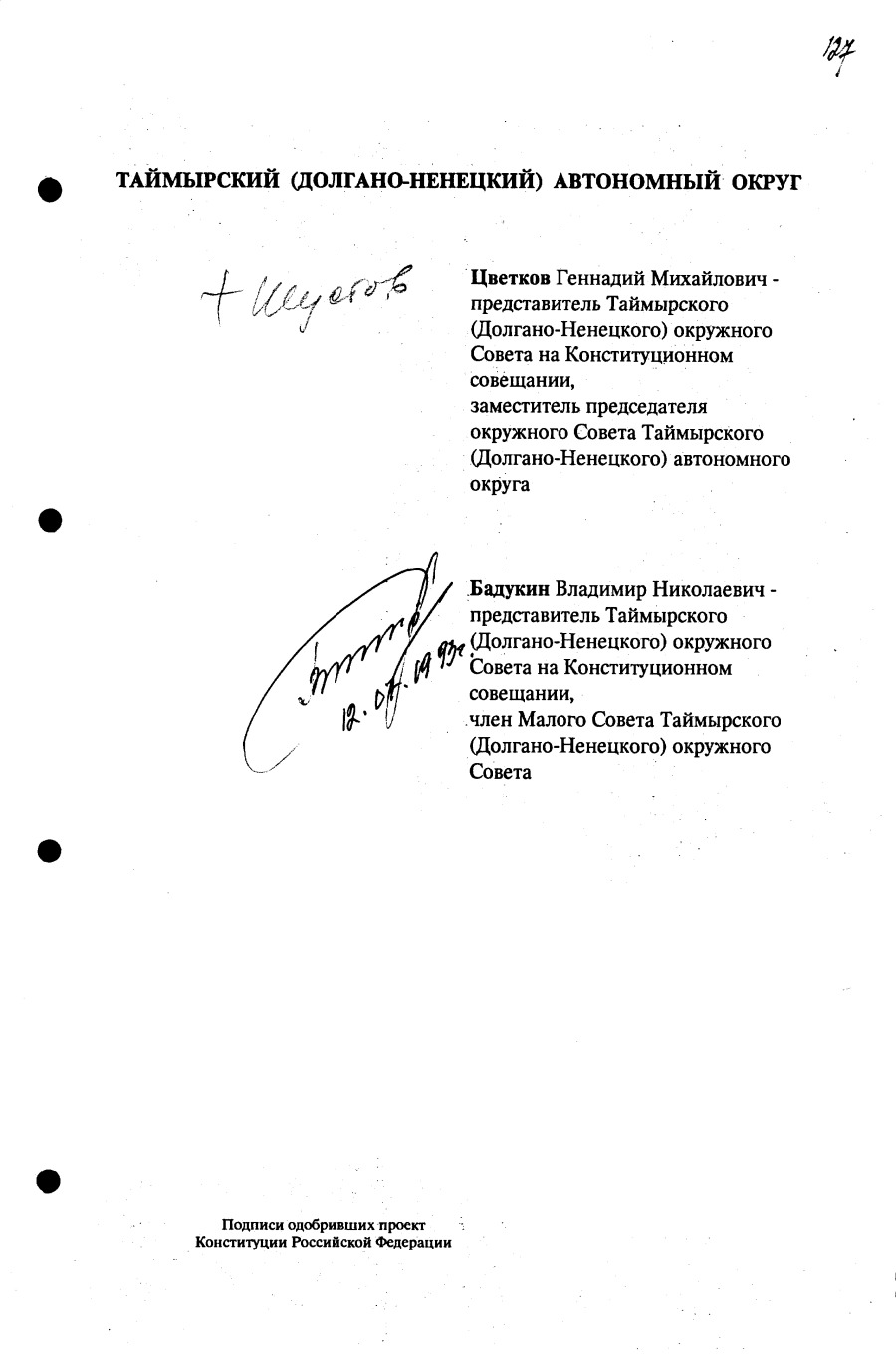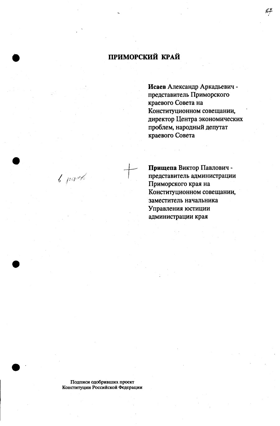 Проект Конституции РФ и подписи участников Конституционного совещания, одобривших этот проект 12 июля 1993 года (Представители органов государстваенной власти республик в составе РФ, краев, областей, автономной области, автономных округов, городов Московской области)