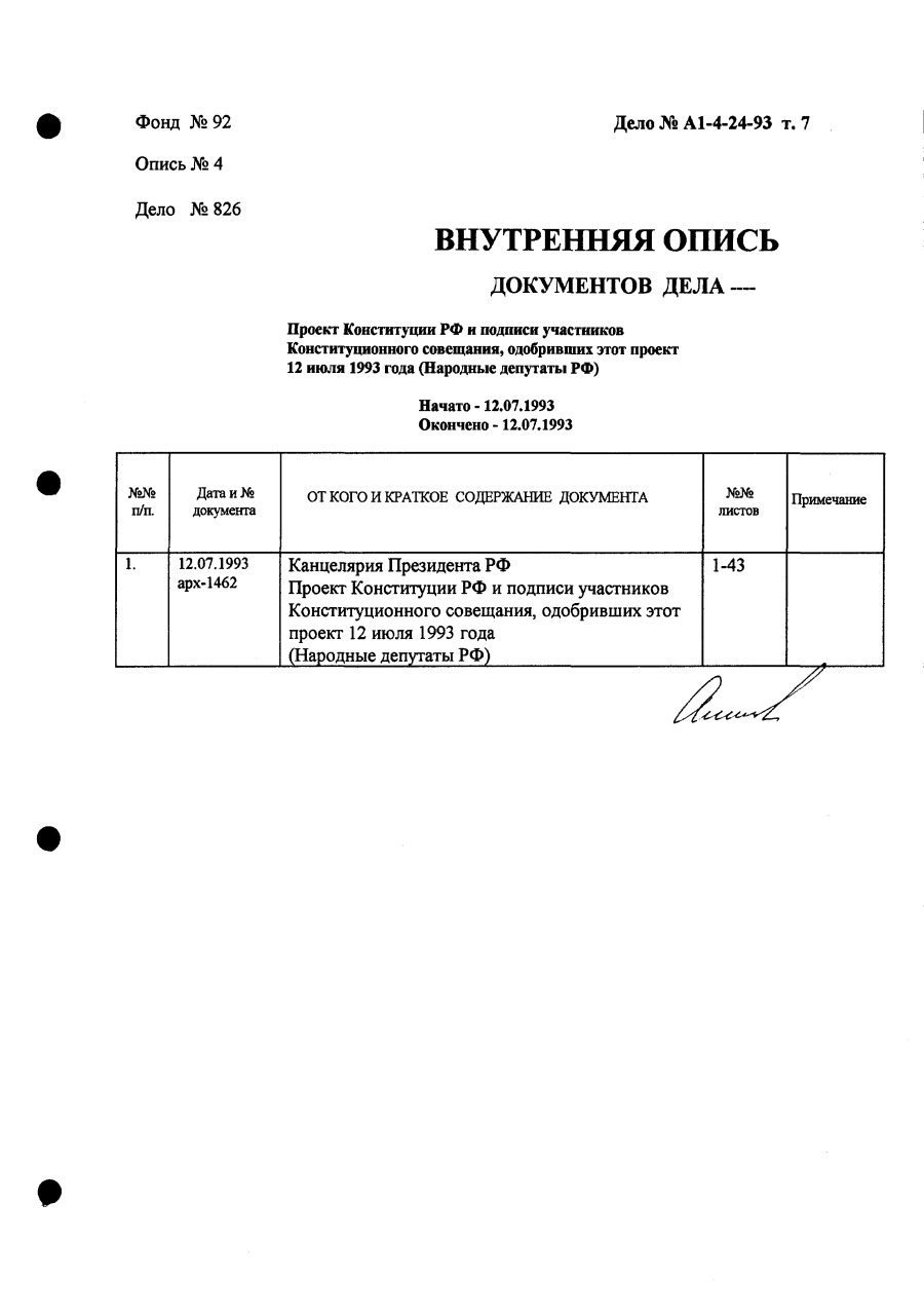 Проект Конституции РФ и подписи участников Конституционного совещания, одобривших этот проект 12 июля 1993 года (Народные депутаты РФ)