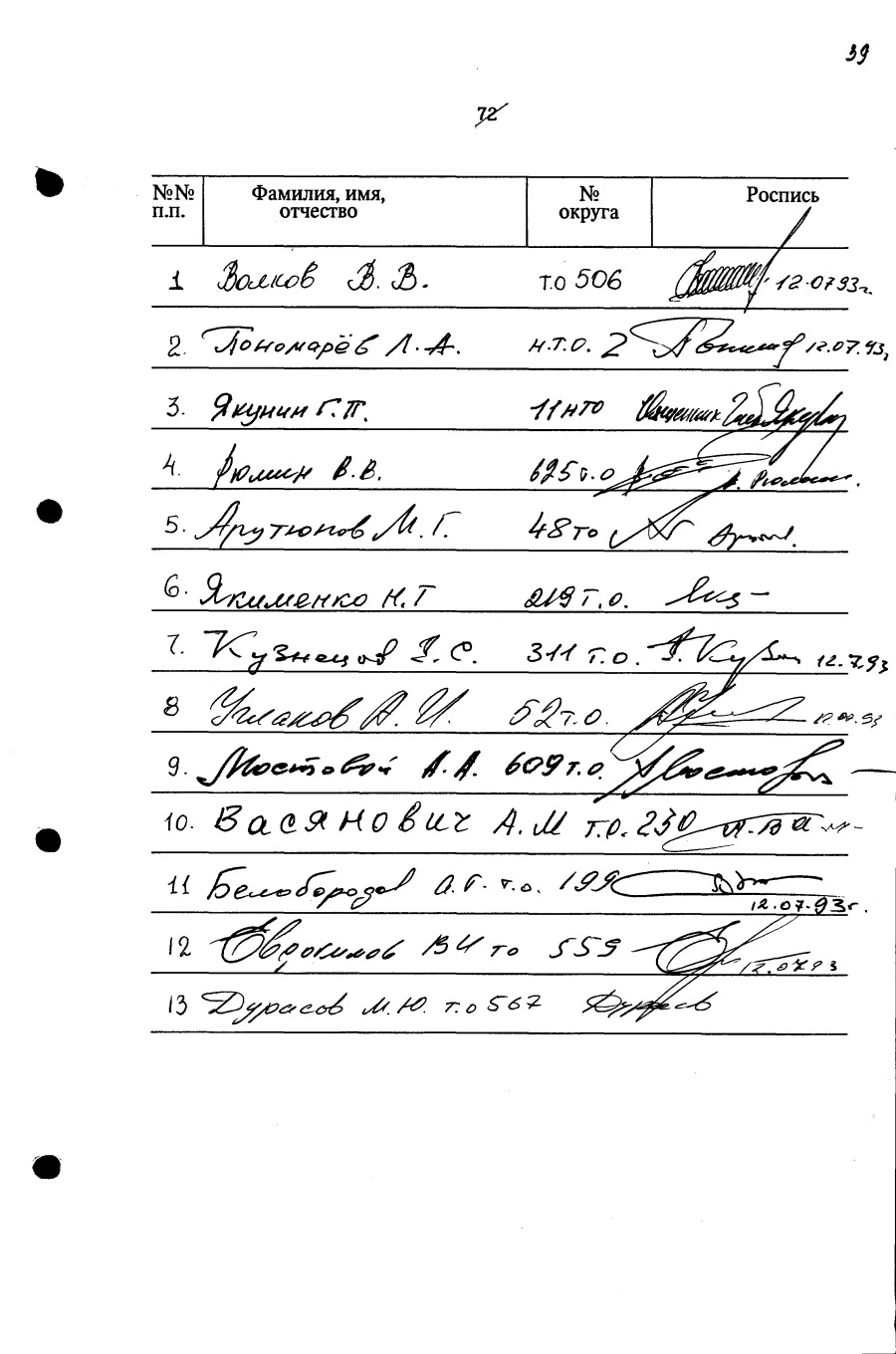 | Проект Конституции РФ и подписи участников Конституционного совещания, одобривших этот проект 12 июля 1993 года (Представители товаропроизводителей и предпринимателей) |
