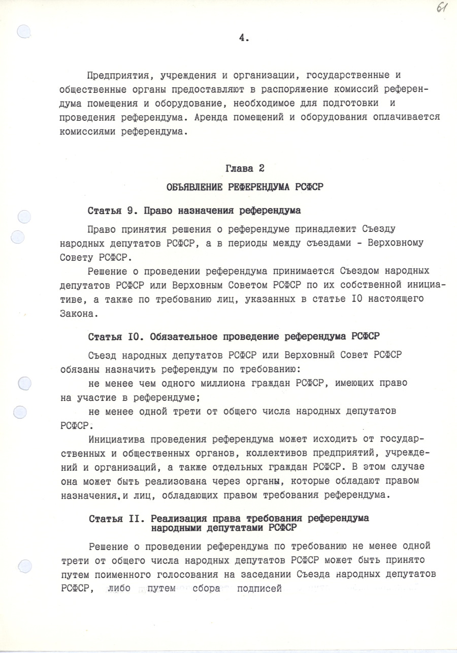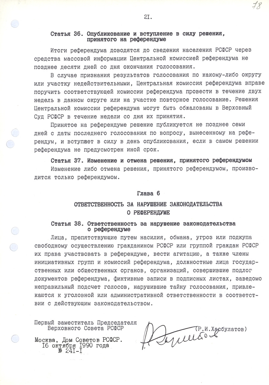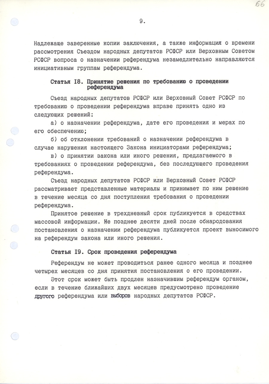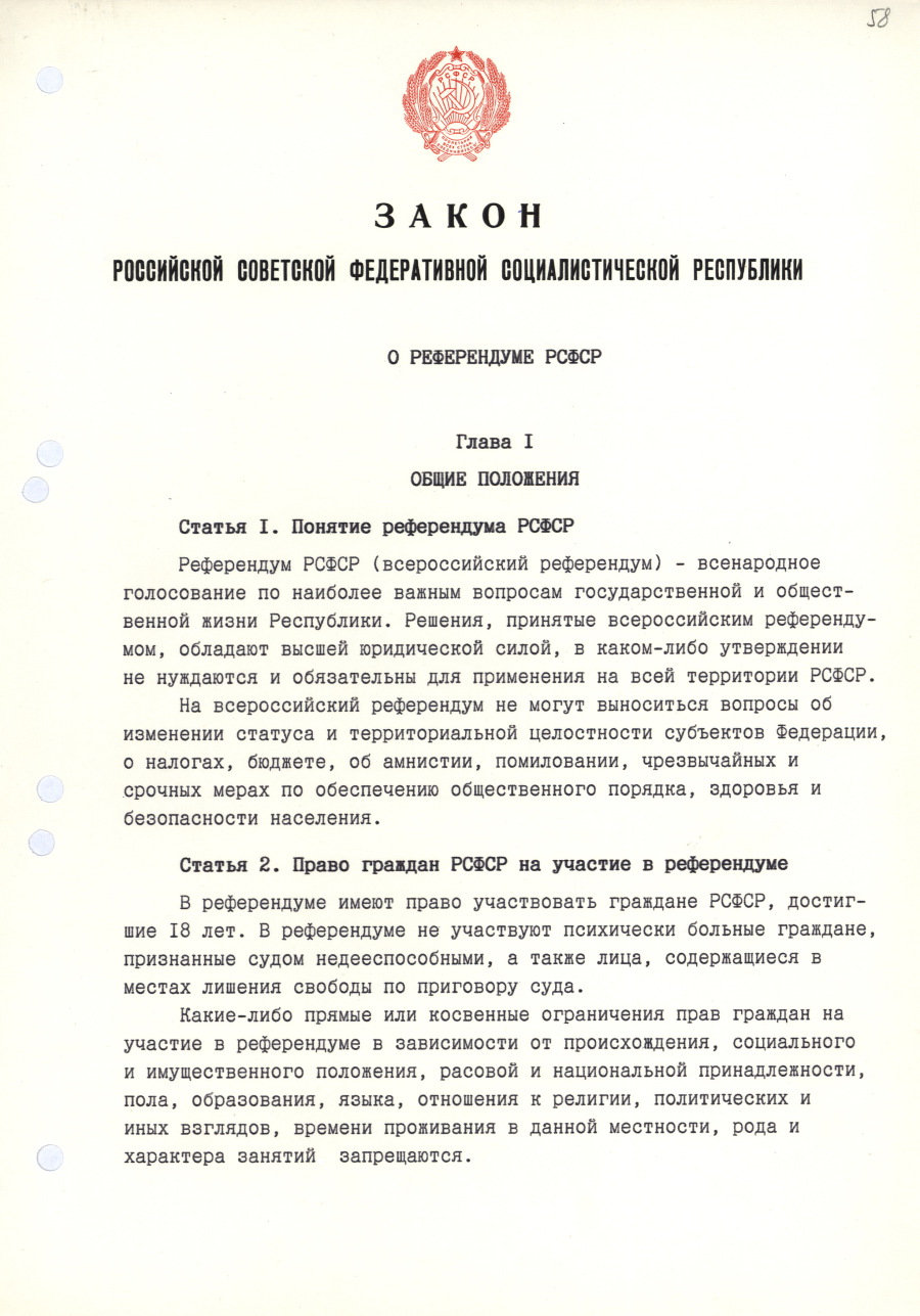 | Декларация о государственном суверенитете РСФСР. | / | Закон Российской Советской Федеративной Социалистической Республики «О Президенте РСФСР». |