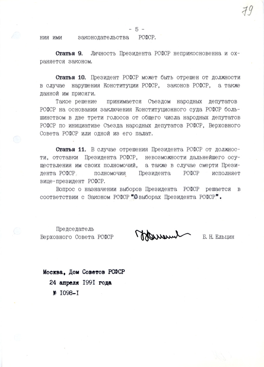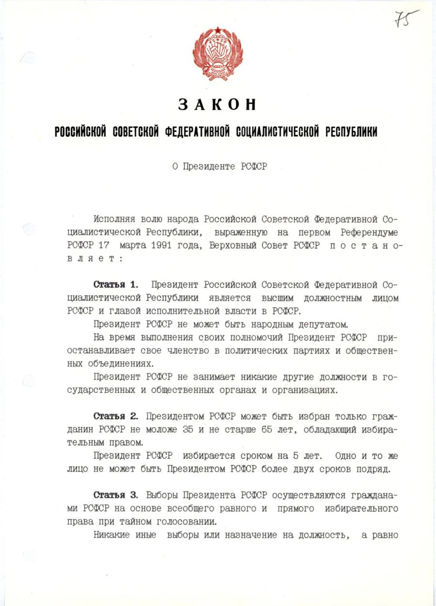 Закон Российской Советской Федеративной Социалистической Республики «О Президенте РСФСР».