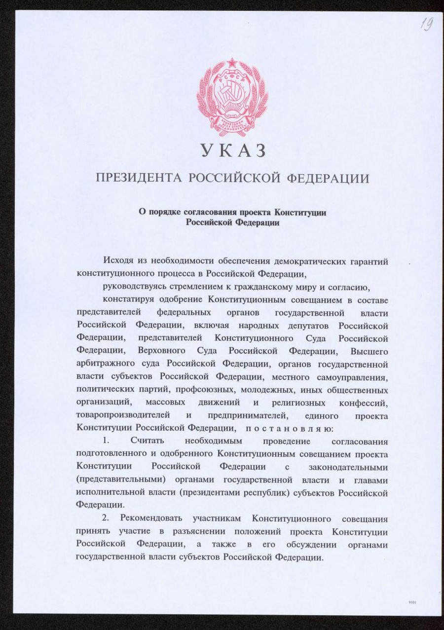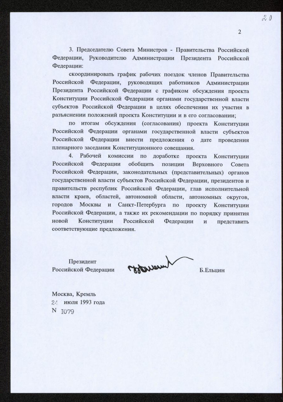Указ Президента Российской Федерации № 1079 «О порядке согласования проекта Конституции Российской Федерации».