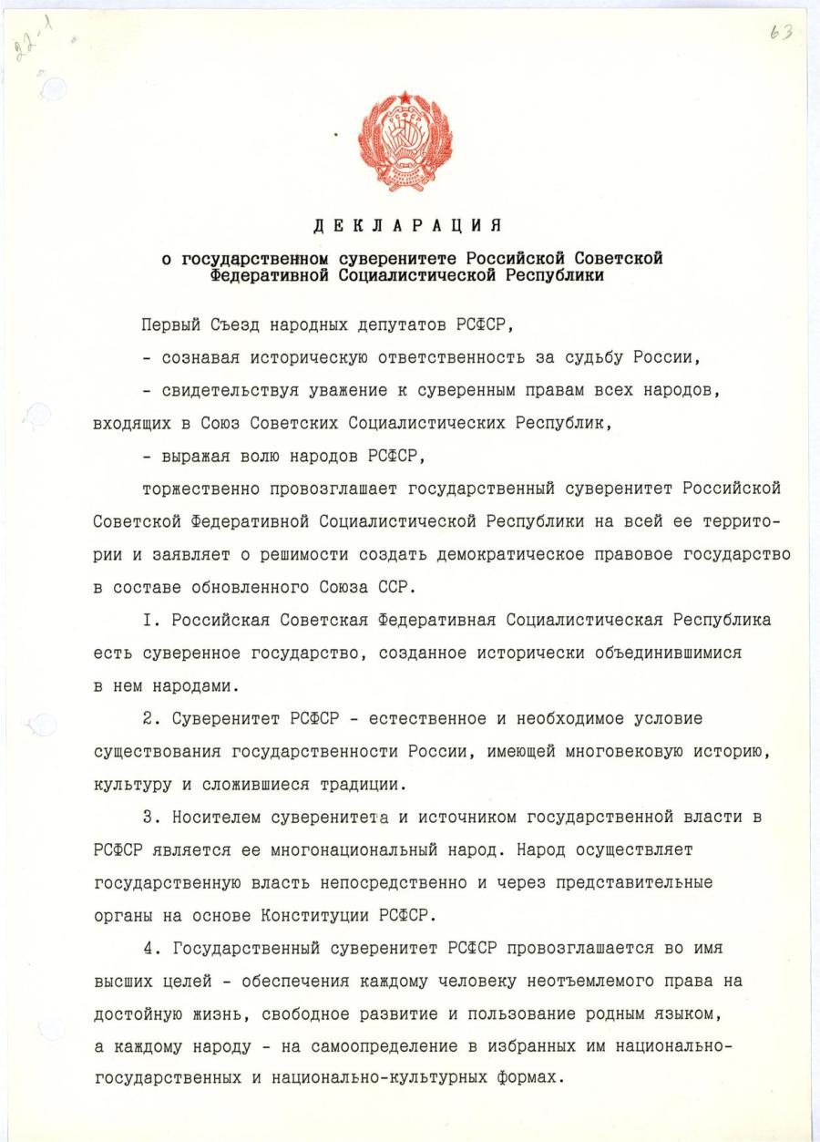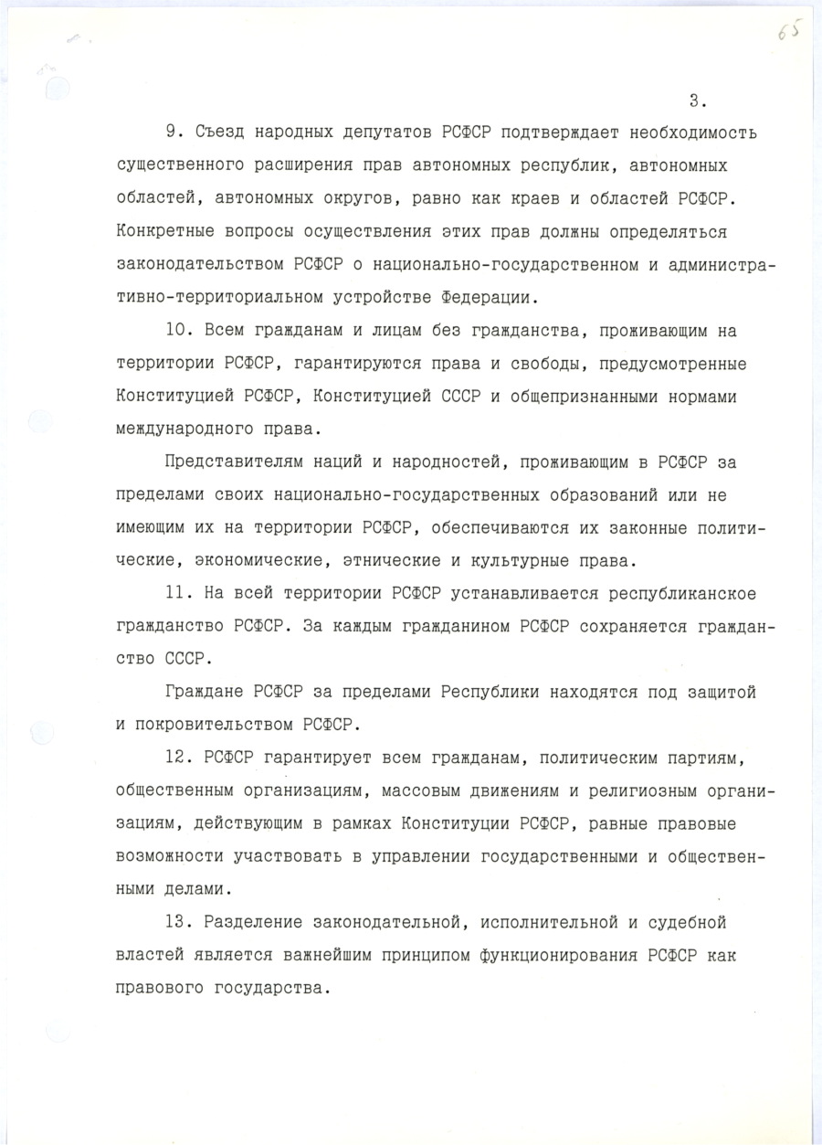 | Протокол № 3 Счетной Комиссии внеочередного третьего Съезда народных депутатов СССР о результатах тайного голосования по выборам Президента СССР. | / | Закон о референдуме РСФСР. |