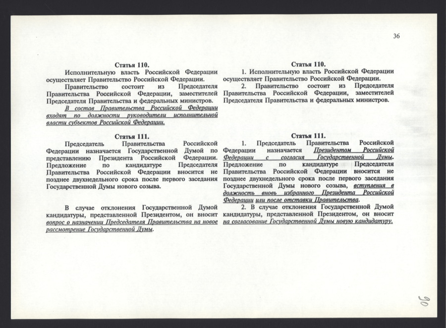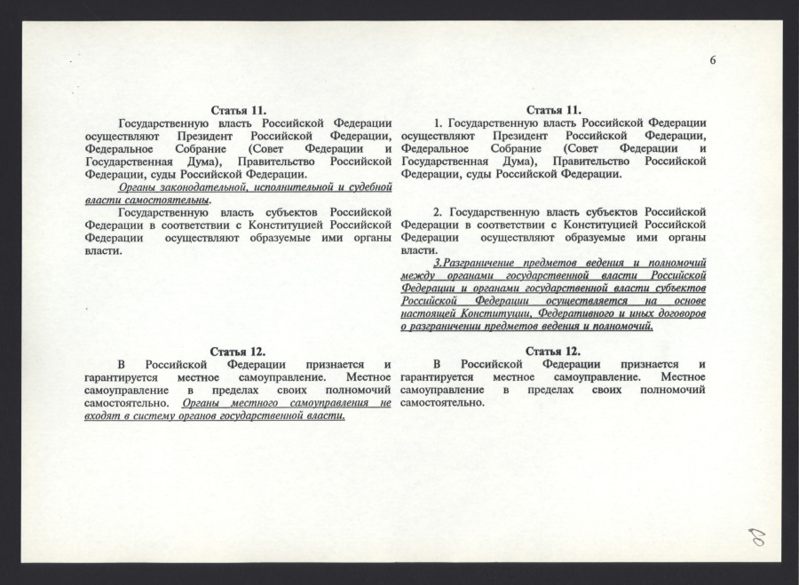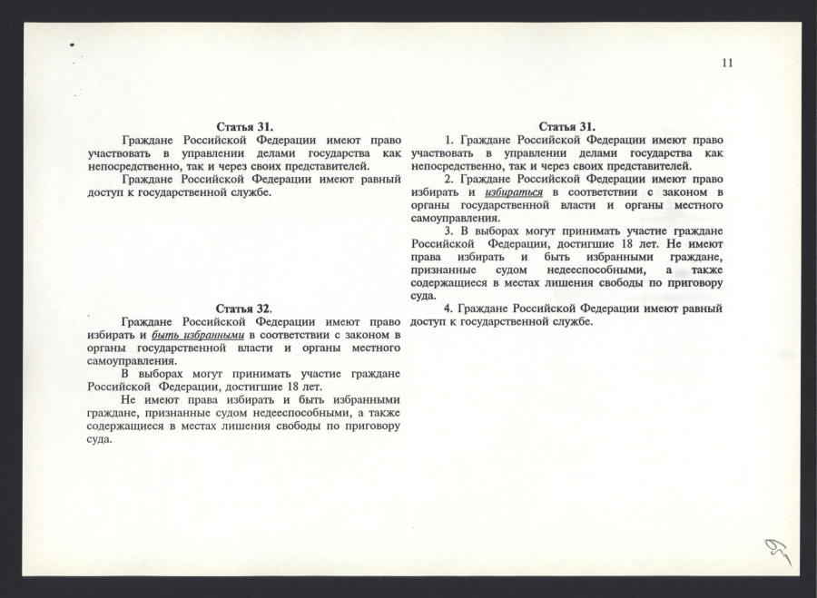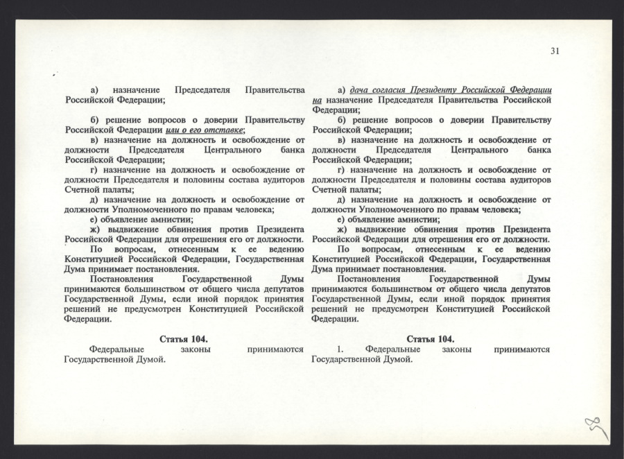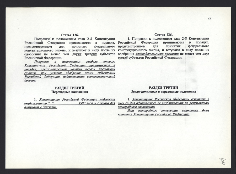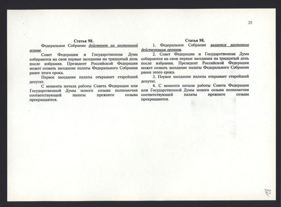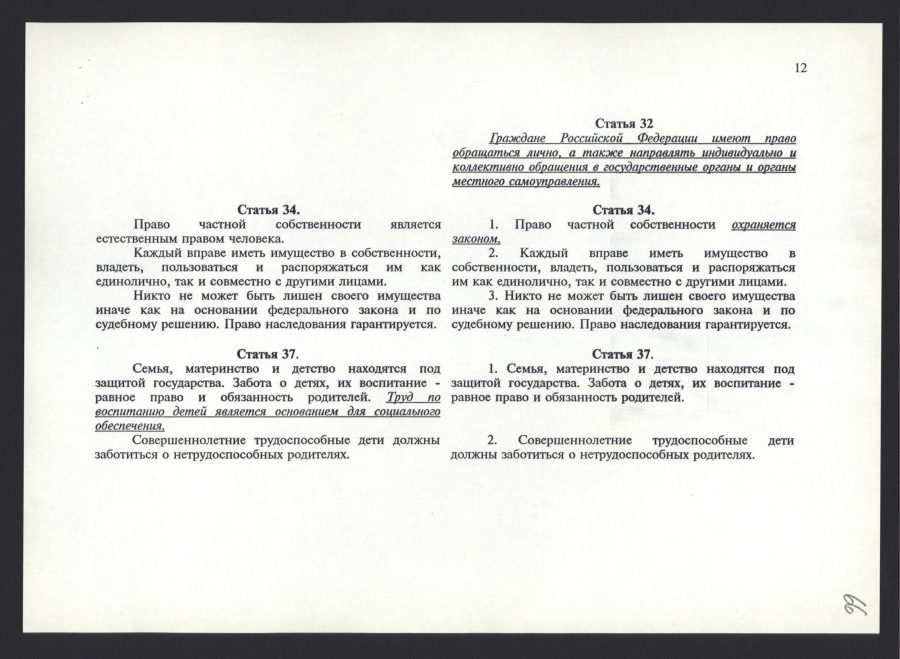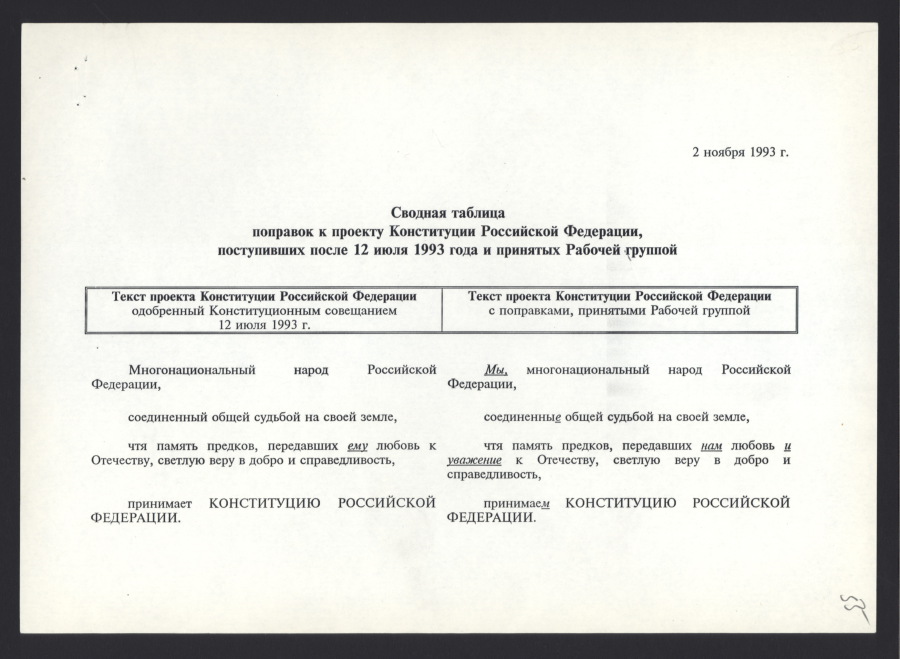 Сводная таблица поправок к проекту Конституции Российской Федерации, поступивших после 12 июля 1993 и принятых рабочей группой.