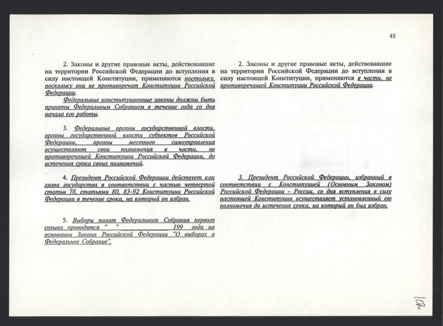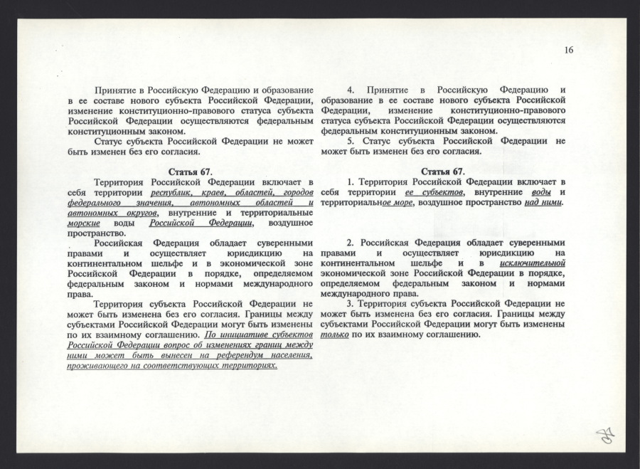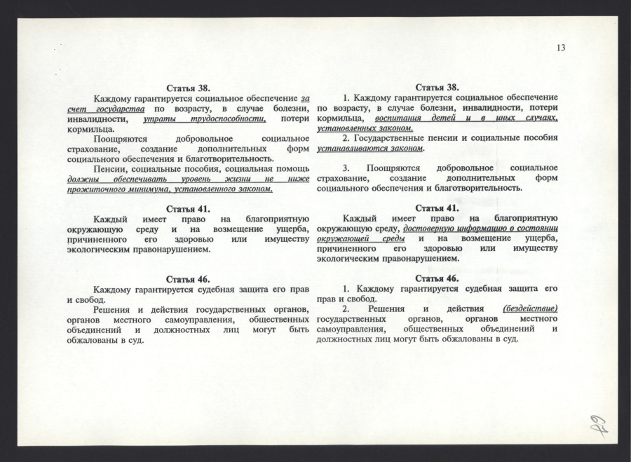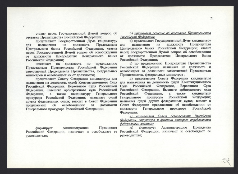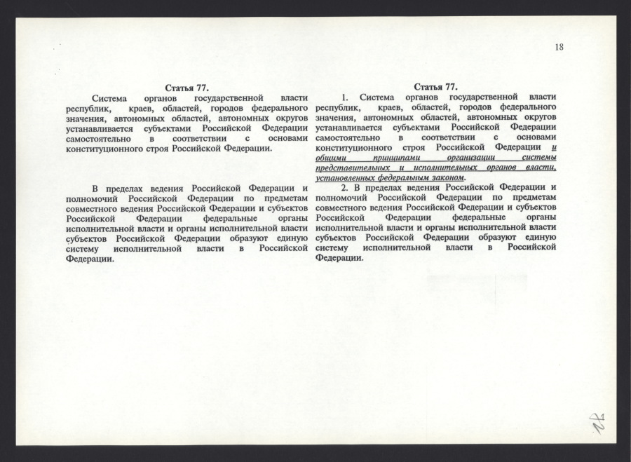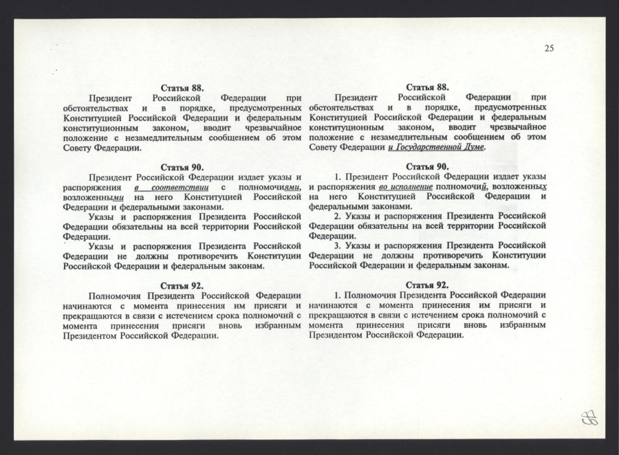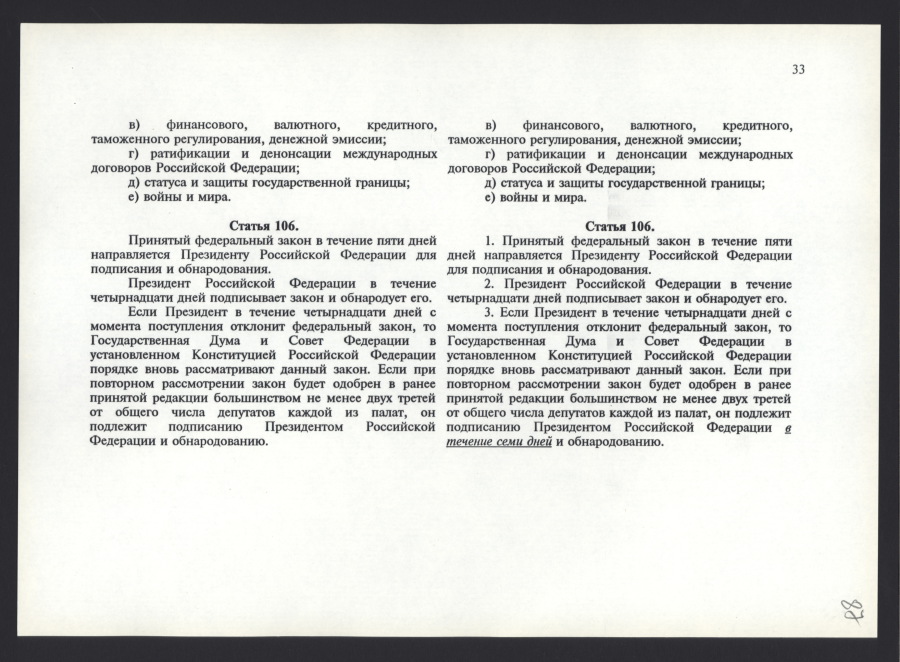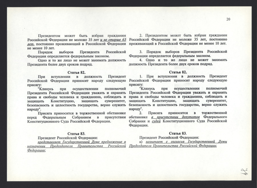 Сводная таблица поправок к проекту Конституции Российской Федерации, поступивших после 12 июля 1993 и принятых рабочей группой.