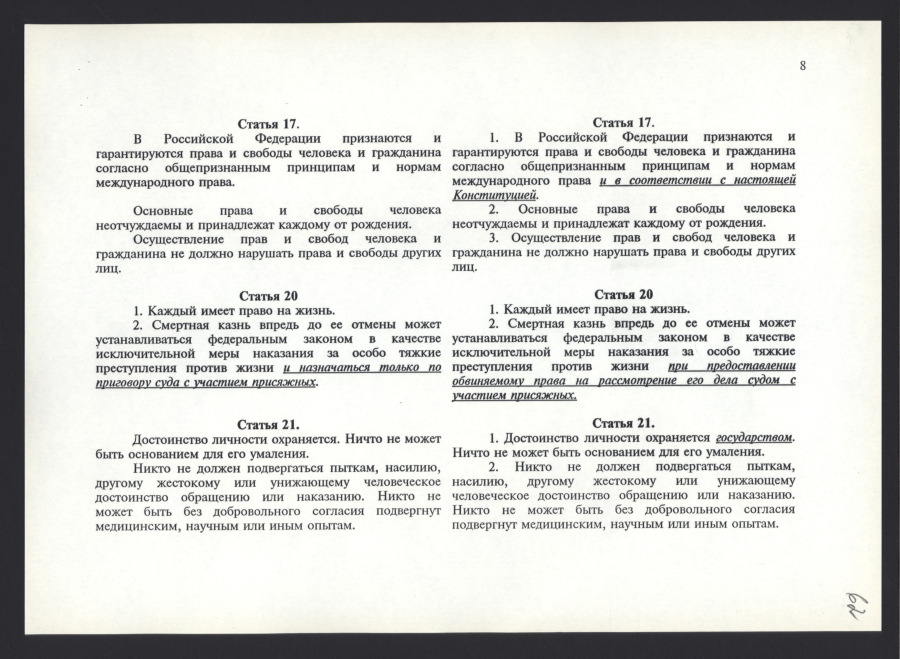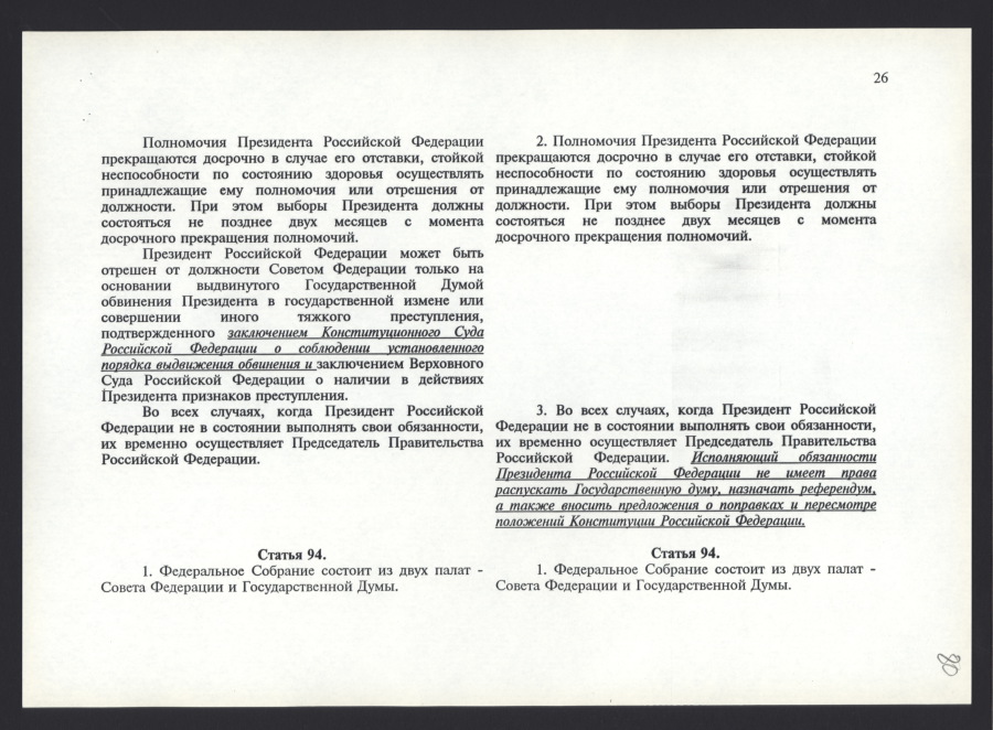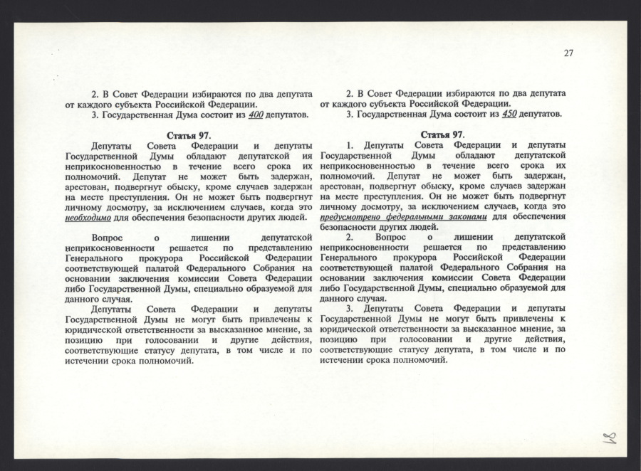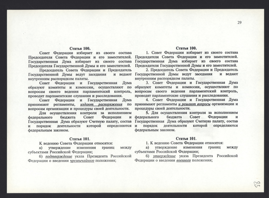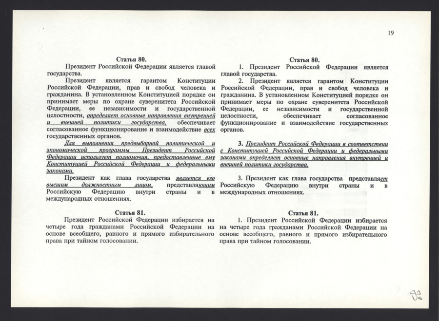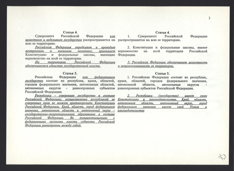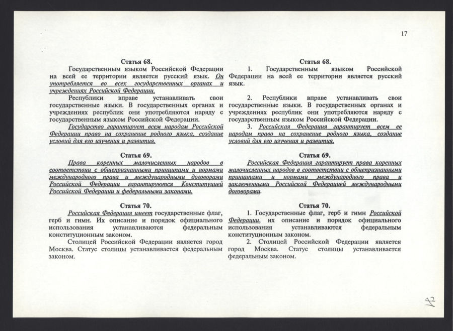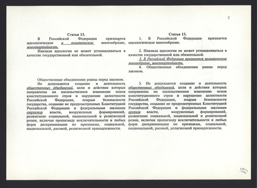 Сводная таблица поправок к проекту Конституции Российской Федерации, поступивших после 12 июля 1993 и принятых рабочей группой.