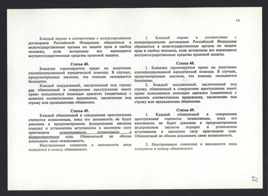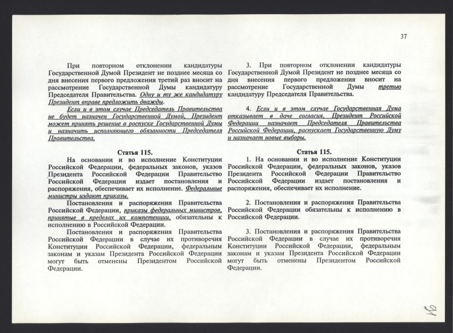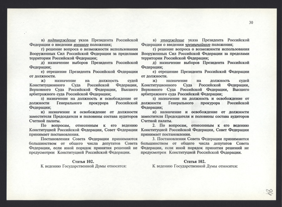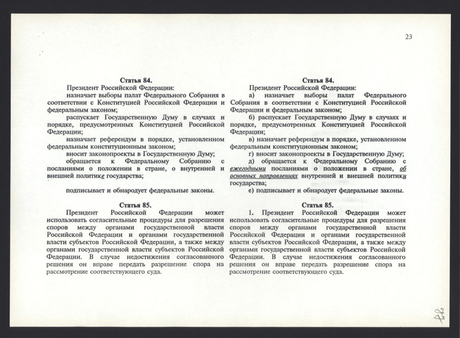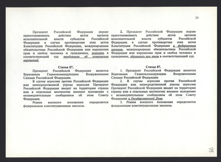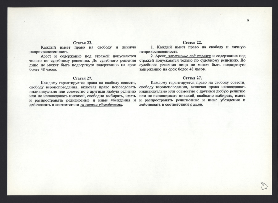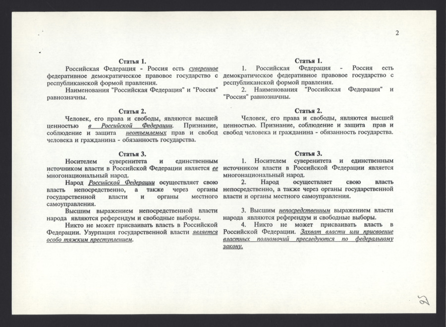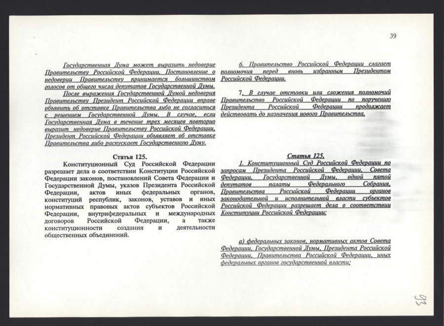 Сводная таблица поправок к проекту Конституции Российской Федерации, поступивших после 12 июля 1993 и принятых рабочей группой.